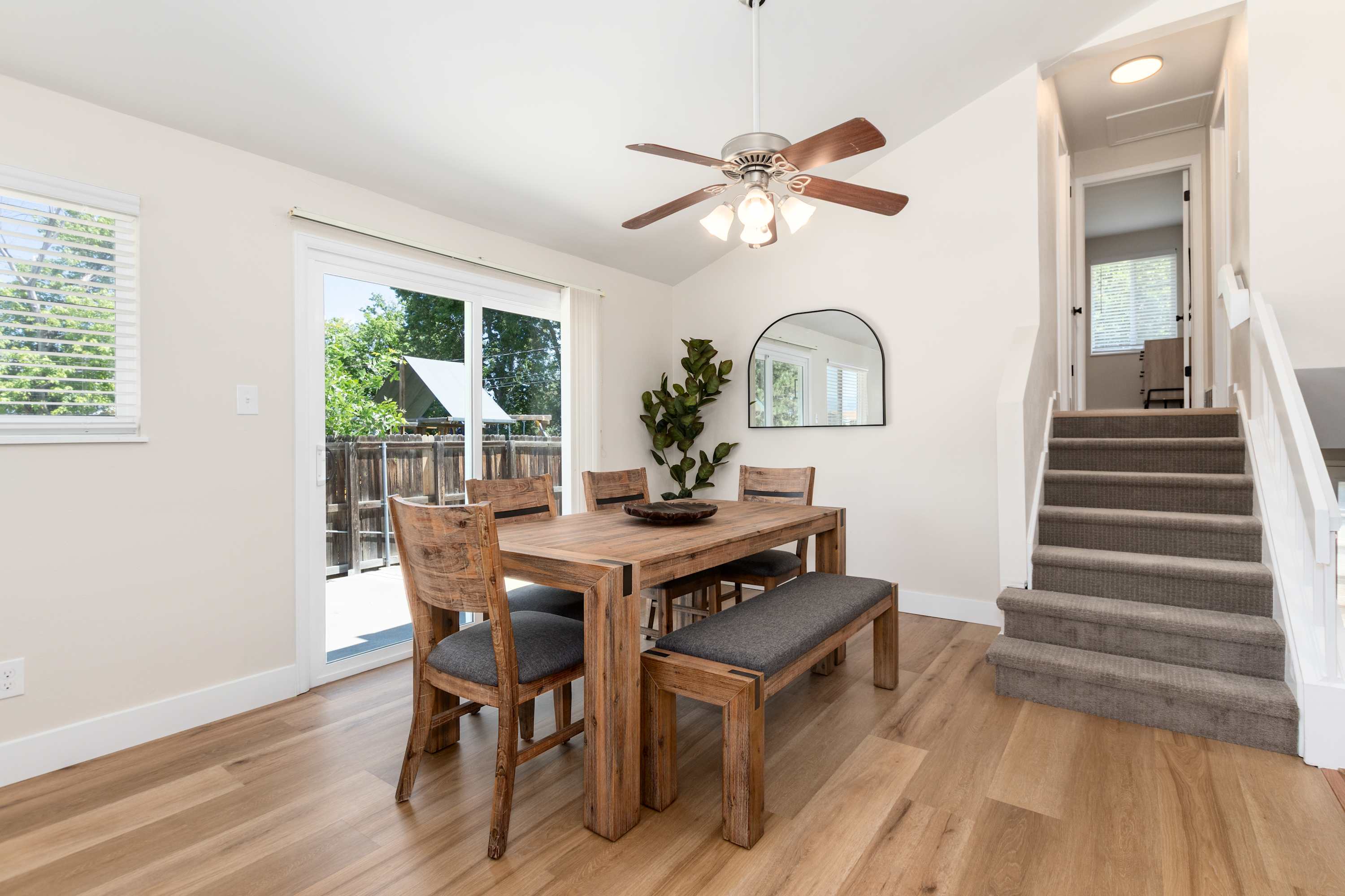• Breakfast nook with seating for three + highchair