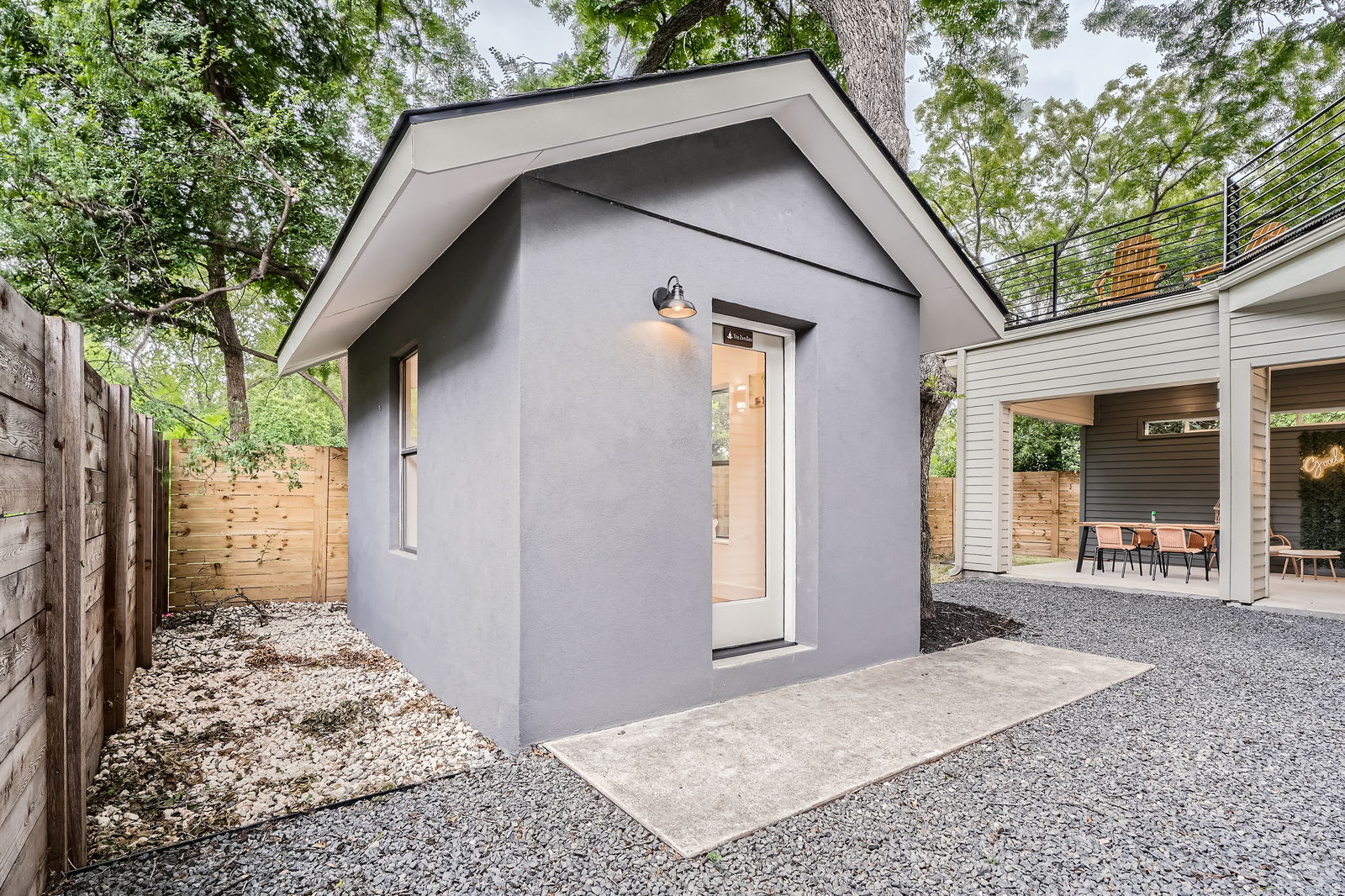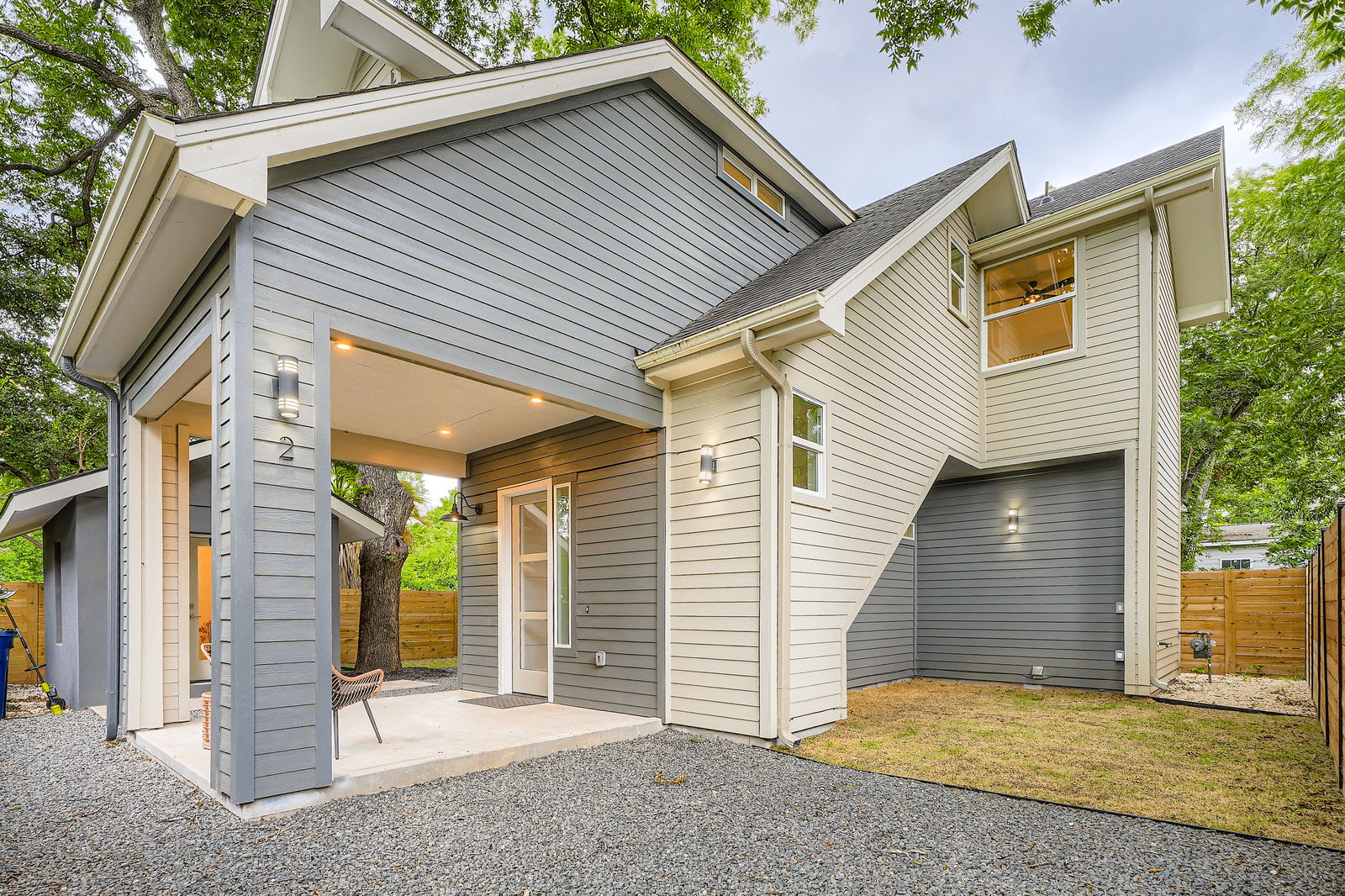 Welcome to our New Modern East Austin home with 2 bedrooms, 2.5 baths, and stylish finishes throughout. Enjoy a bright, open layout, fully stocked kitchen, and two private ensuite bedrooms...perfect for couples, friends, or remote workers. Step out to your private patio and spacious yard that backs to a peaceful creek...or relax in the detached studio space. Walkable, Fast WiFi, washer/dryer, and a serene urban vibe just minutes from downtown, bars, food trucks, and Lady Bird Lake!