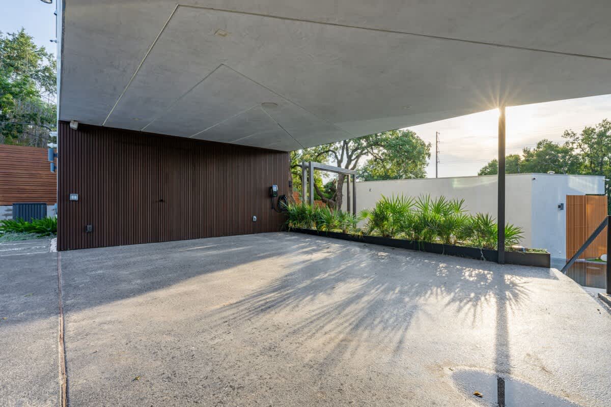 Includes an electric vehicle charging station and parking for up to three vehicles.