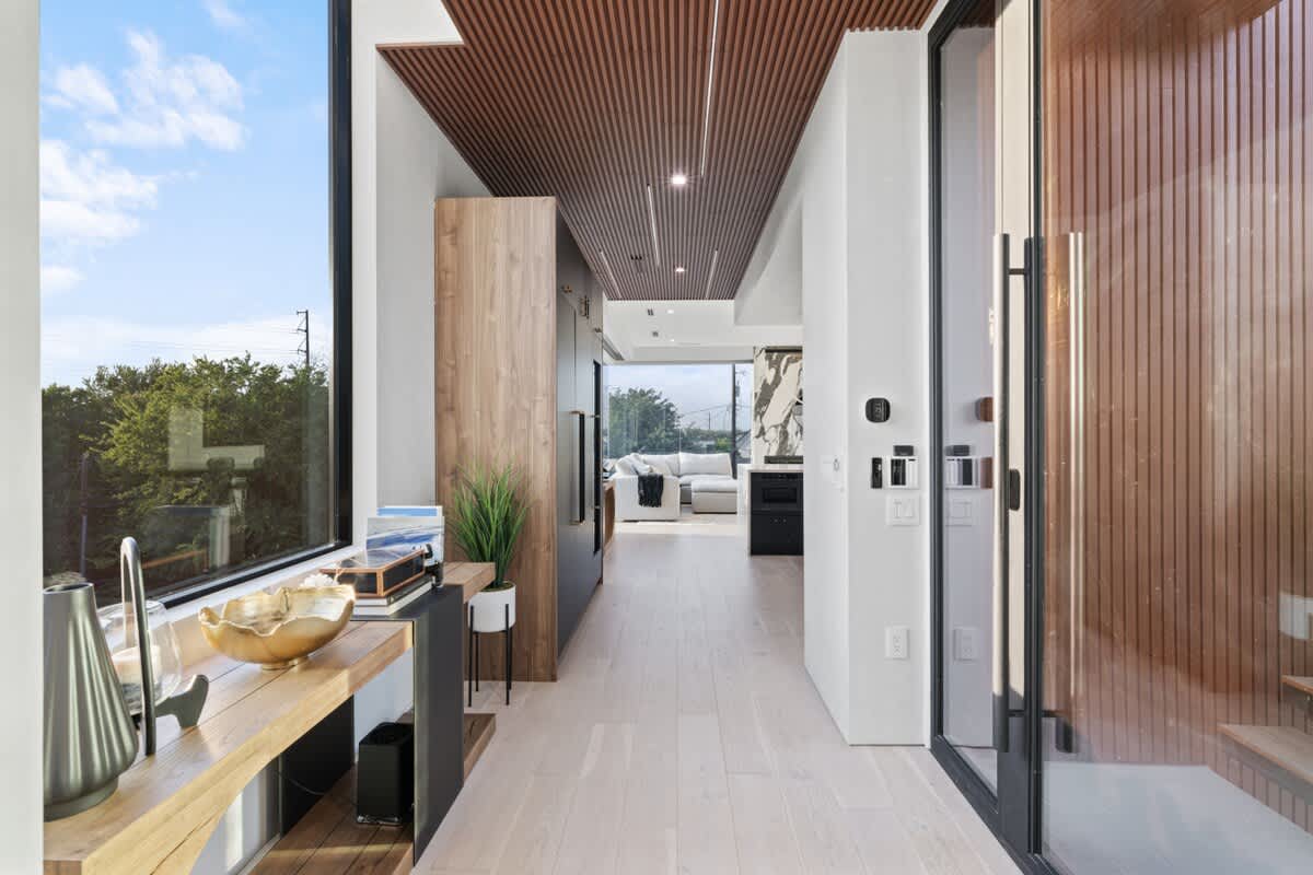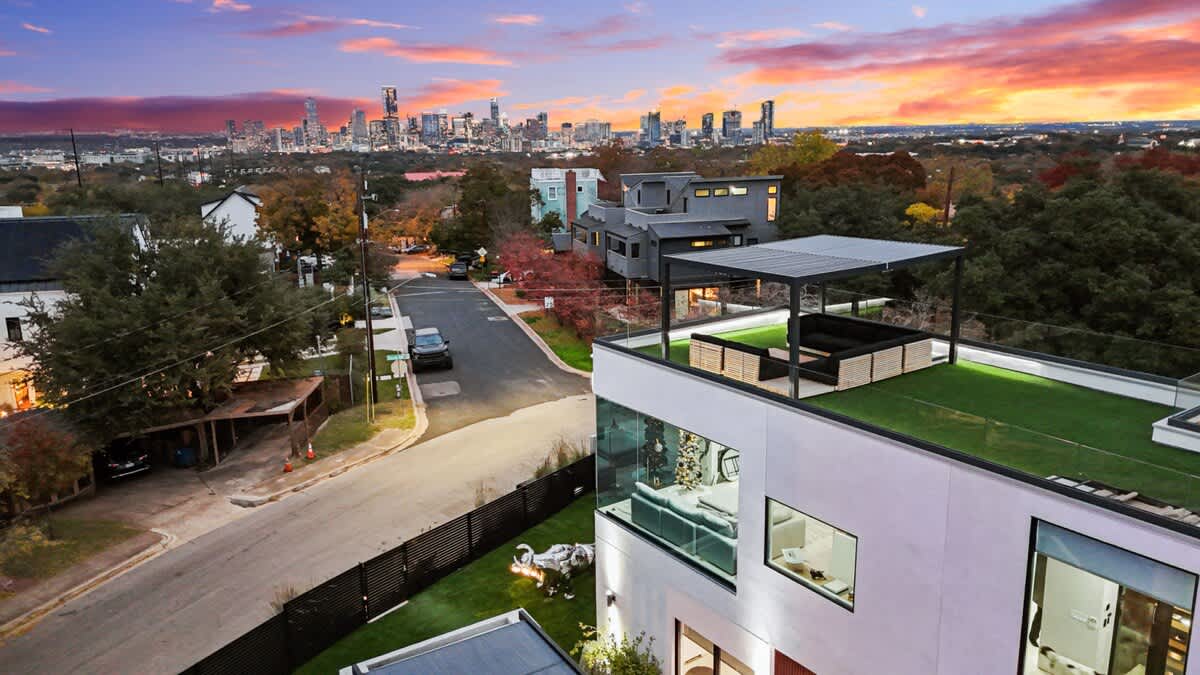 This home is a visual masterpiece with floor-to-ceiling windows that frame the downtown skyline and hill country. Its refined interior blends clean lines with cozy textures, making it as welcoming as it is elegant.