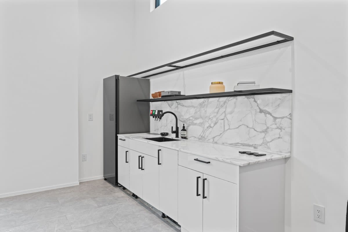 Fully equipped with a gas range, premium Dacor fridge/freezer, wine fridge, microwave, dishwasher, and ample counter space—perfect for cooking or entertaining.