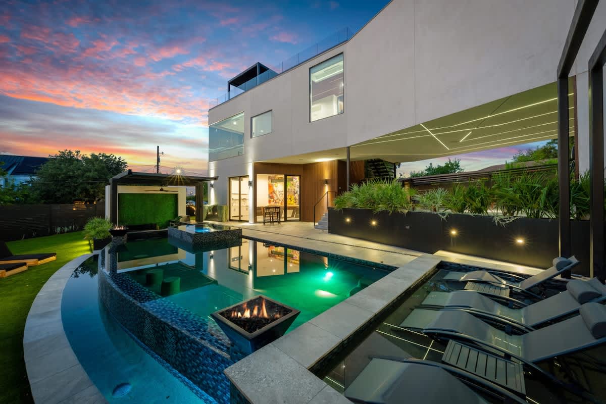 Ultra-luxury 2BR/3BA home in SoCo with skyline views, private pool, rooftop deck, and smart-home tech. Sleeps 5 with a chef’s kitchen, spa-style baths, and game room. Enjoy a swim-up bar, hot tub, tanning ledge, BBQ kitchen, and lounge seating. Nestled in Travis Heights near shops, food trucks, live music, and Lady Bird Lake trails. Minutes to downtown and airport...perfect for families or groups seeking upscale comfort and prime Austin location. Book your SoCo escape now!