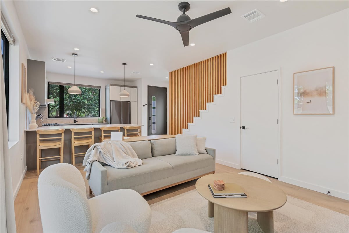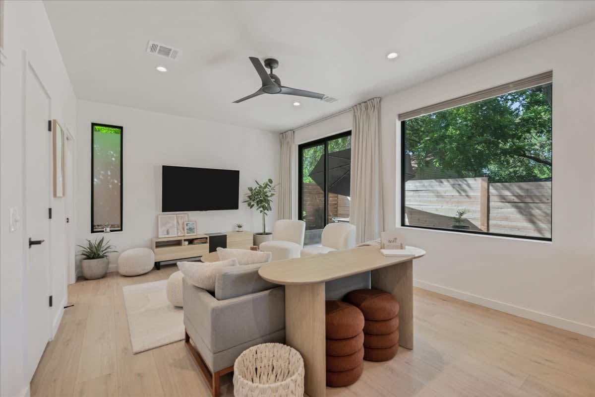 Discover Austin in this calm, stylish two-story home with a modern Japandi aesthetic and tranquil oak tree surroundings. Enjoy two bedrooms with plush queen beds, three well-designed bathrooms, a well-stocked kitchen, and a cozy living room with a sofa bed. Located near vibrant Mueller and Cherrywood, walk to parks, shops, and eateries. Just minutes from downtown, UT, and major employers. Owner-managed, we're here to ensure a seamless stay. Contactless check-in and off-street parking included