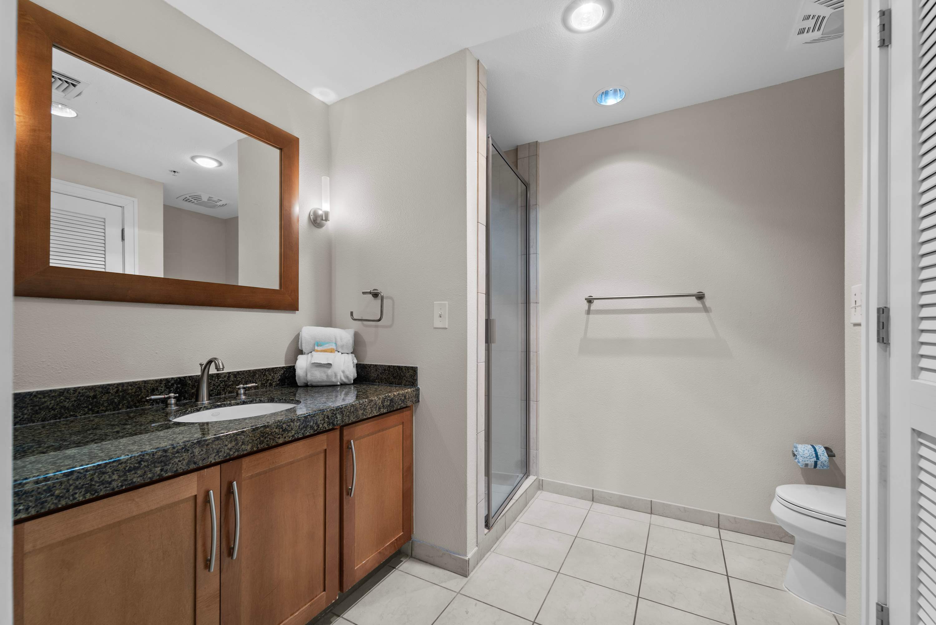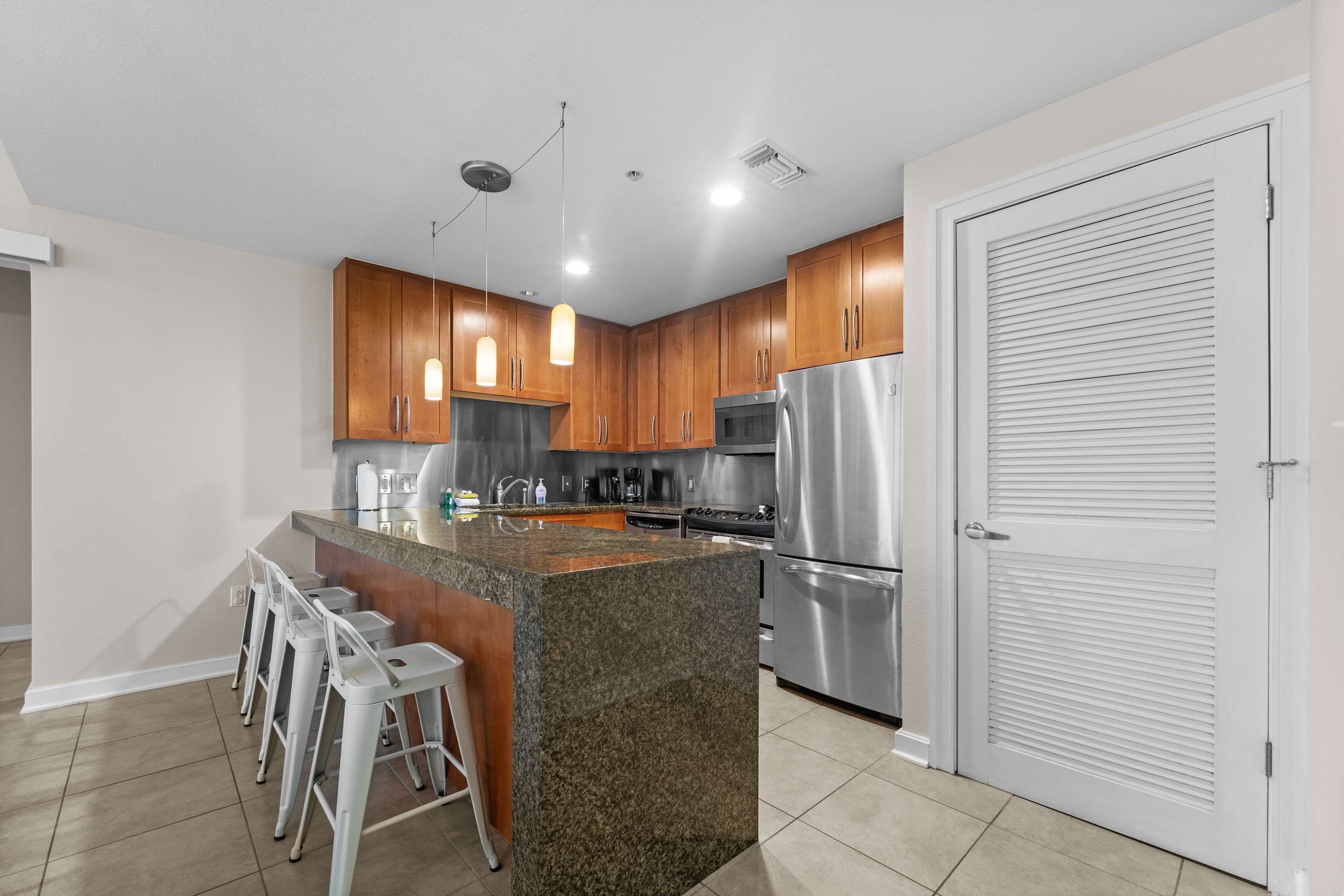 • Fully equipped kitchen with stainless appliances, granite counters, and all essentials