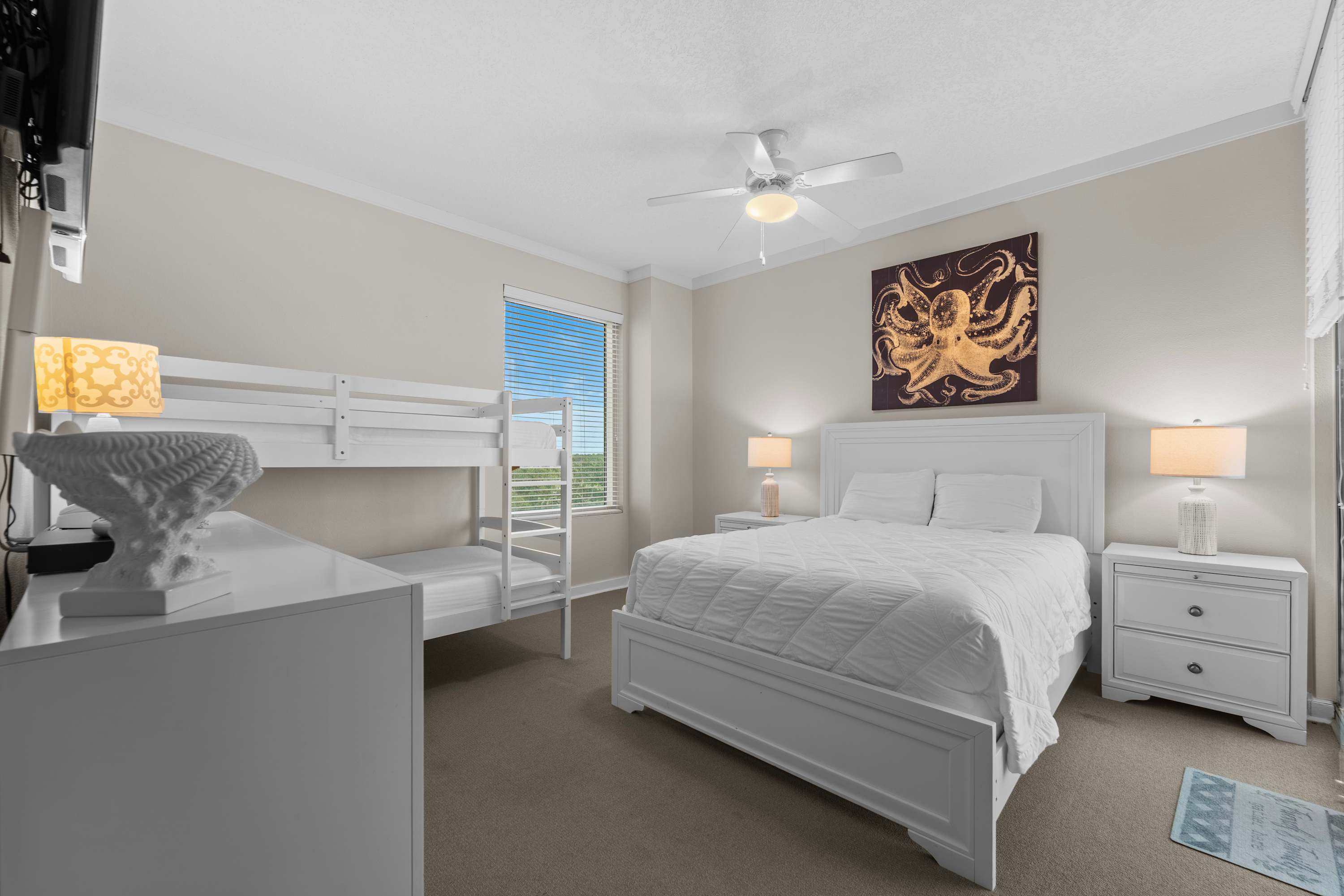 • Second bedroom with a queen bed and easy access to the hall bath