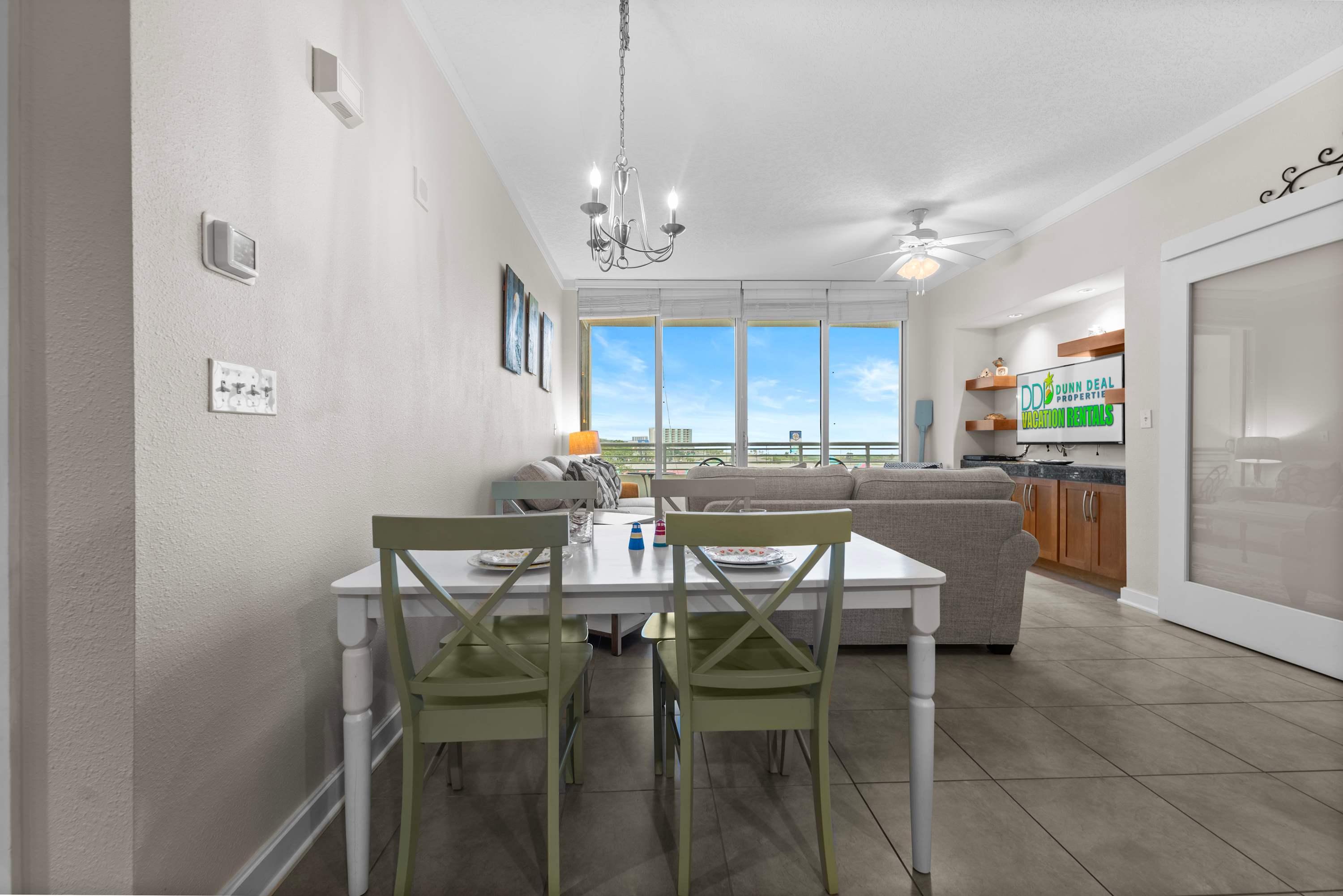 • Open living area with floor to ceiling windows and Gulf views
