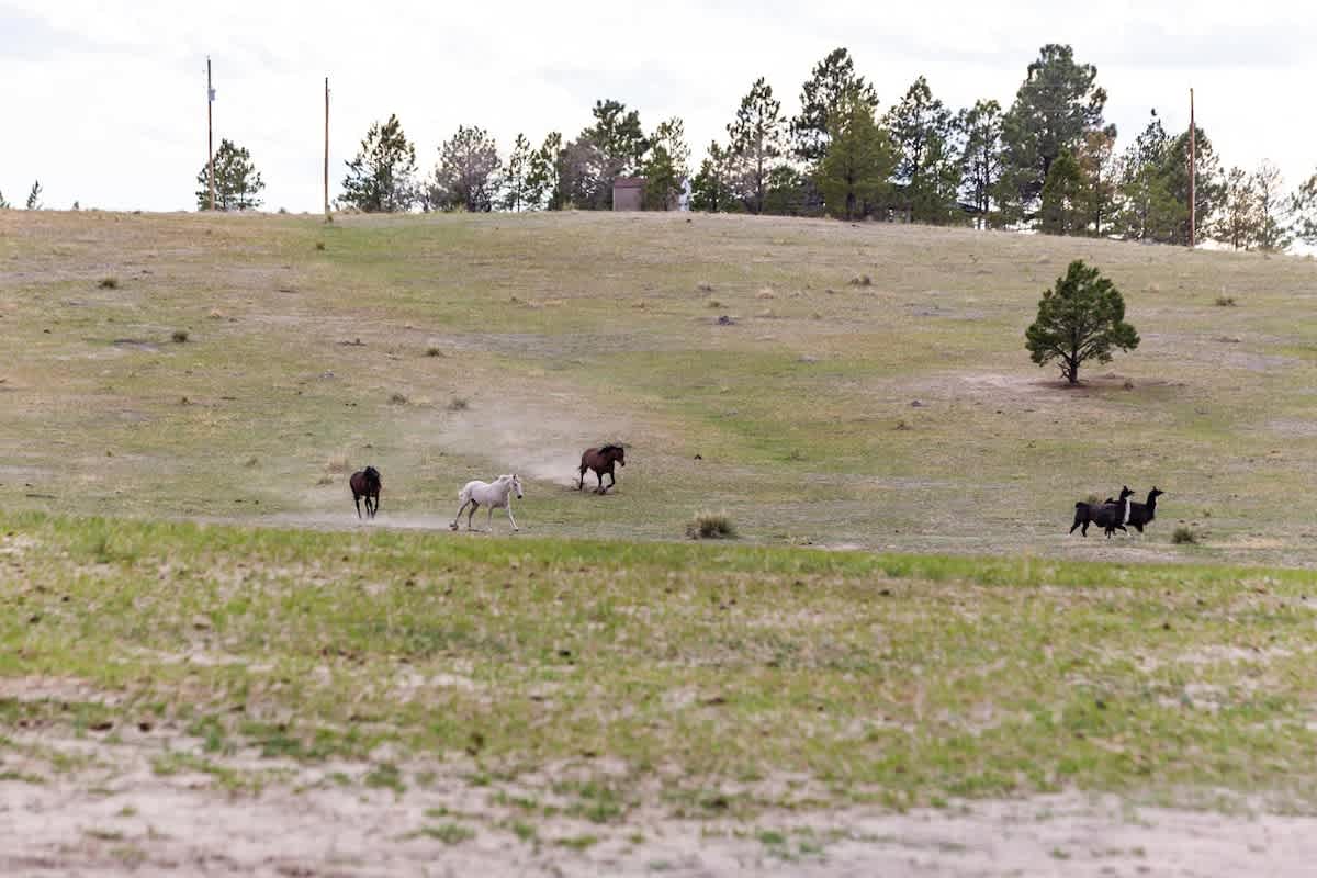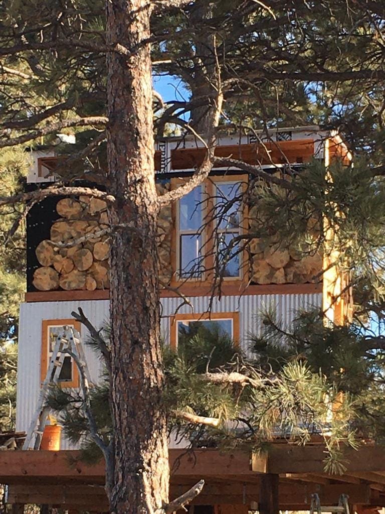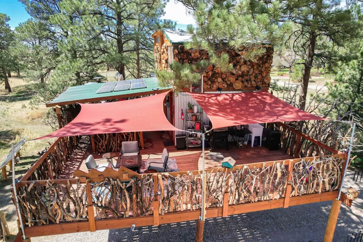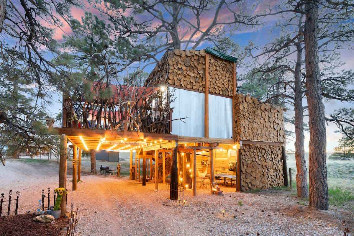 Luxury Glamping NO MATTER THE SEASON...Sun, Rain or Snow! Escape the hustle and bustle of the city and experience this Magical Treehouse! A real treehouse built around PAL a majestic Ponderosa Pine Tree! allSEASON, semi OFF-GRID treasure. Truly "glamping at its finest!" All of the "creature" comforts of home...Located at an elevation of 6476 feet above sea level, on an 80-acre horse ranch, with horses, alpacas, llamas and goats in the heart of Elizabeth, Colorado!!