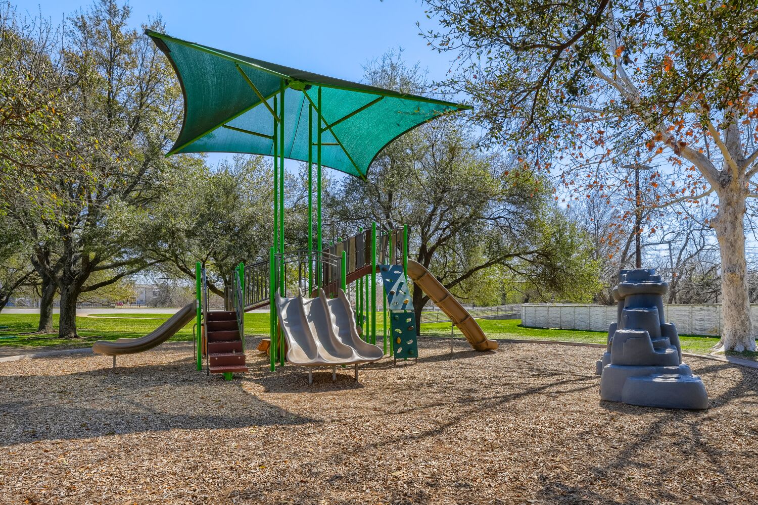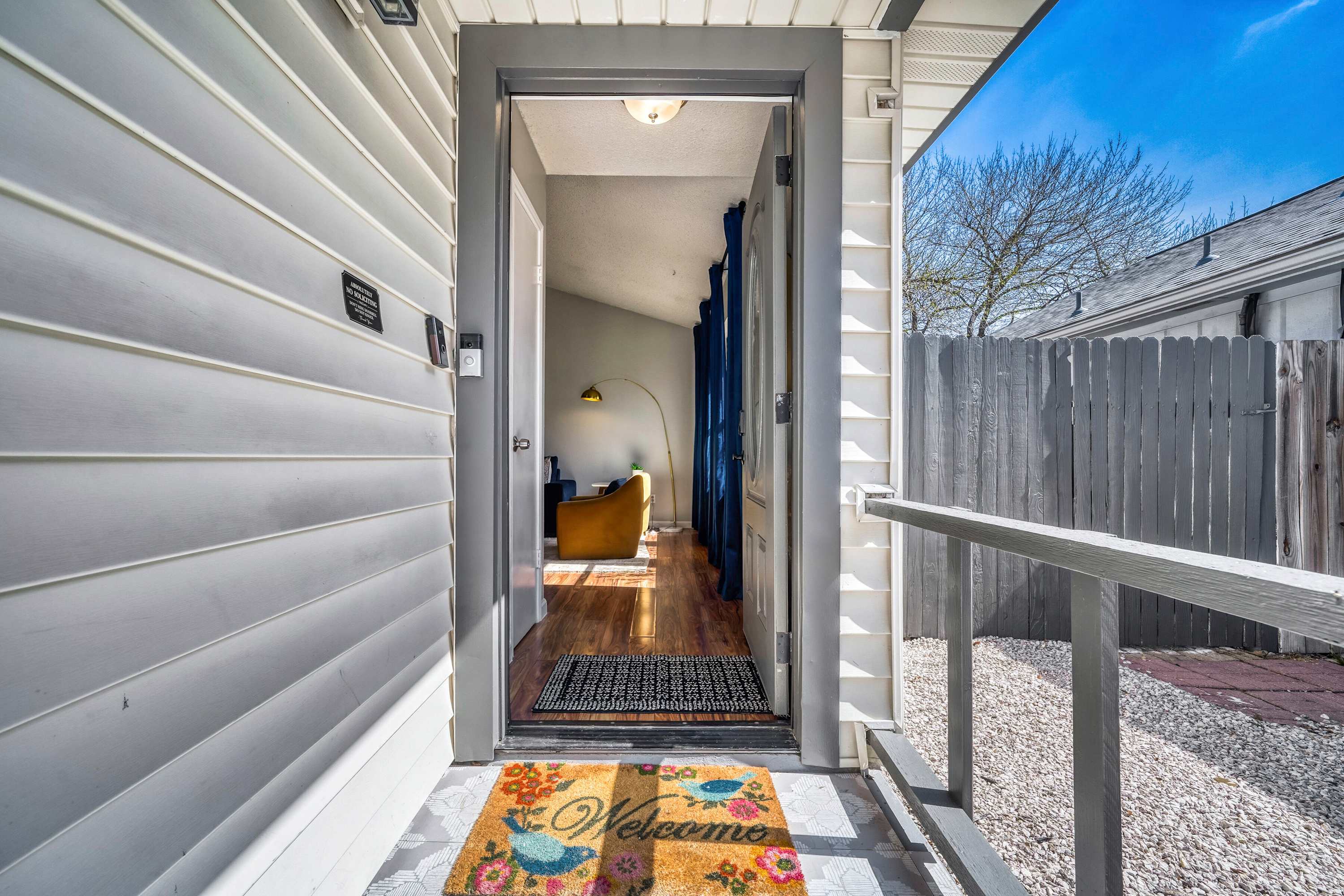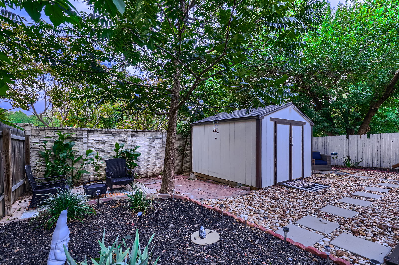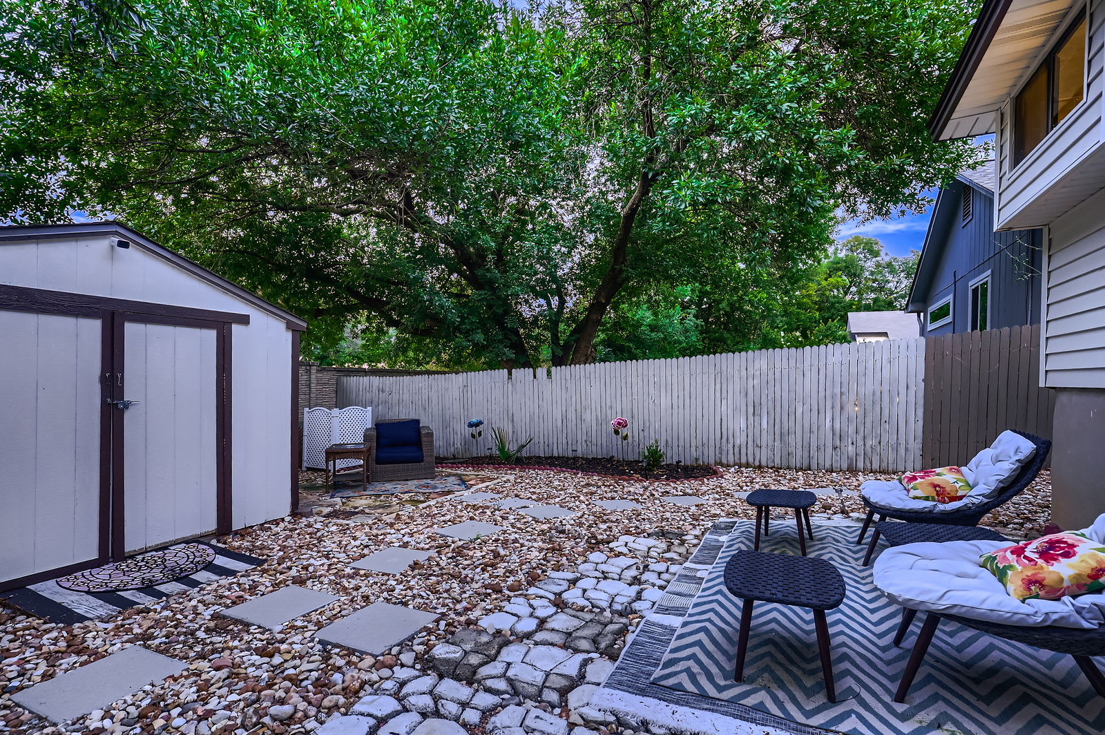 Step through French doors to your private fenced backyard with a wooden deck. Ideal for morning coffee, evening cocktails, or unwinding under the Texas stars.