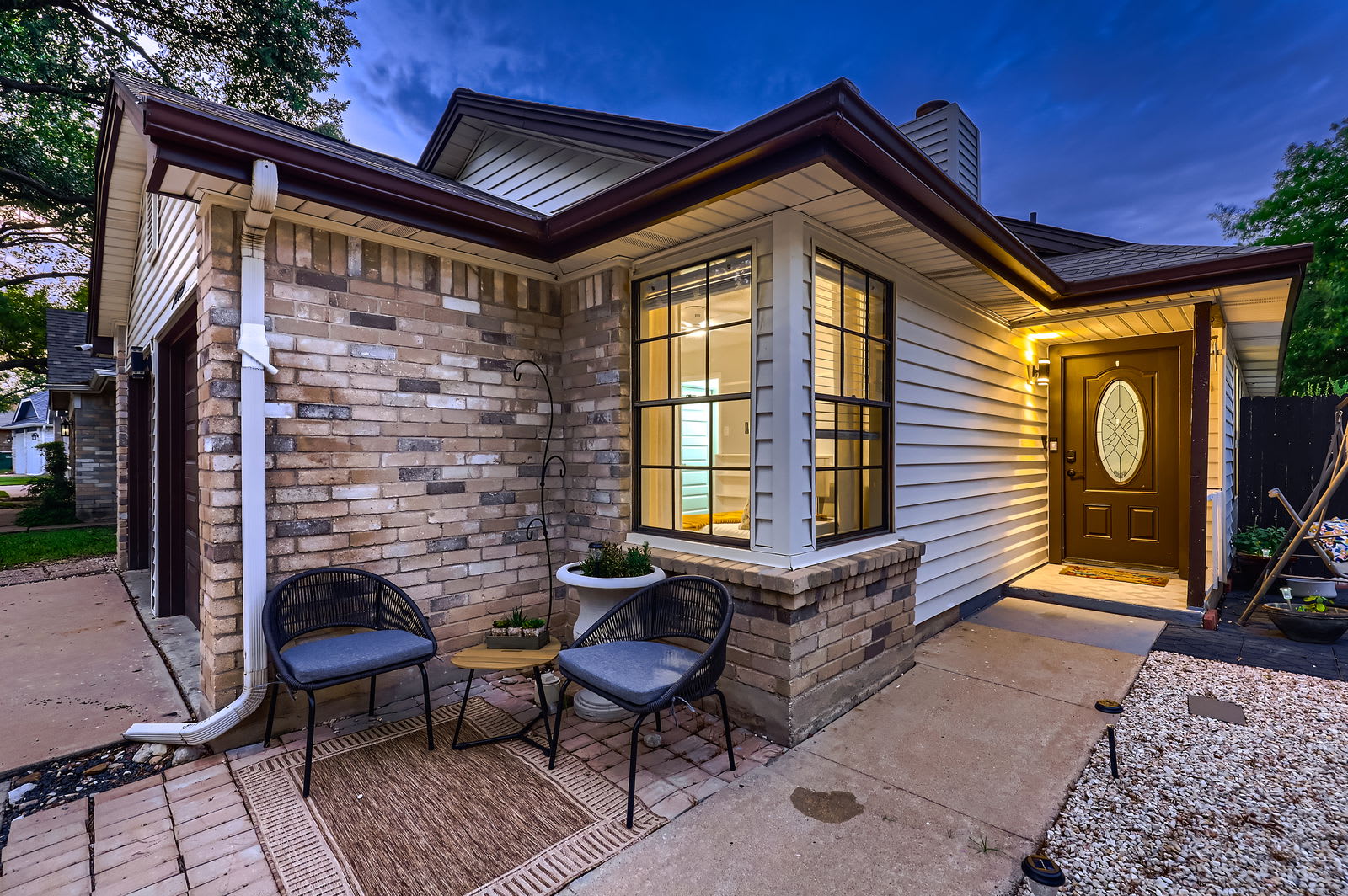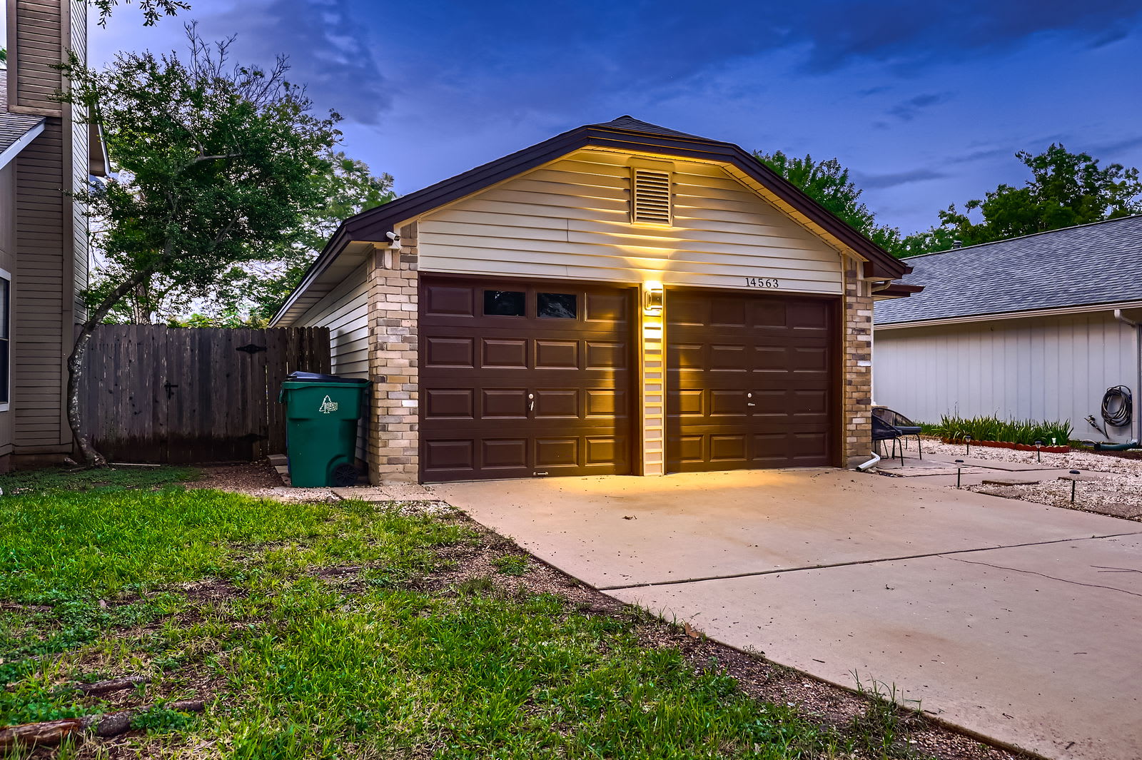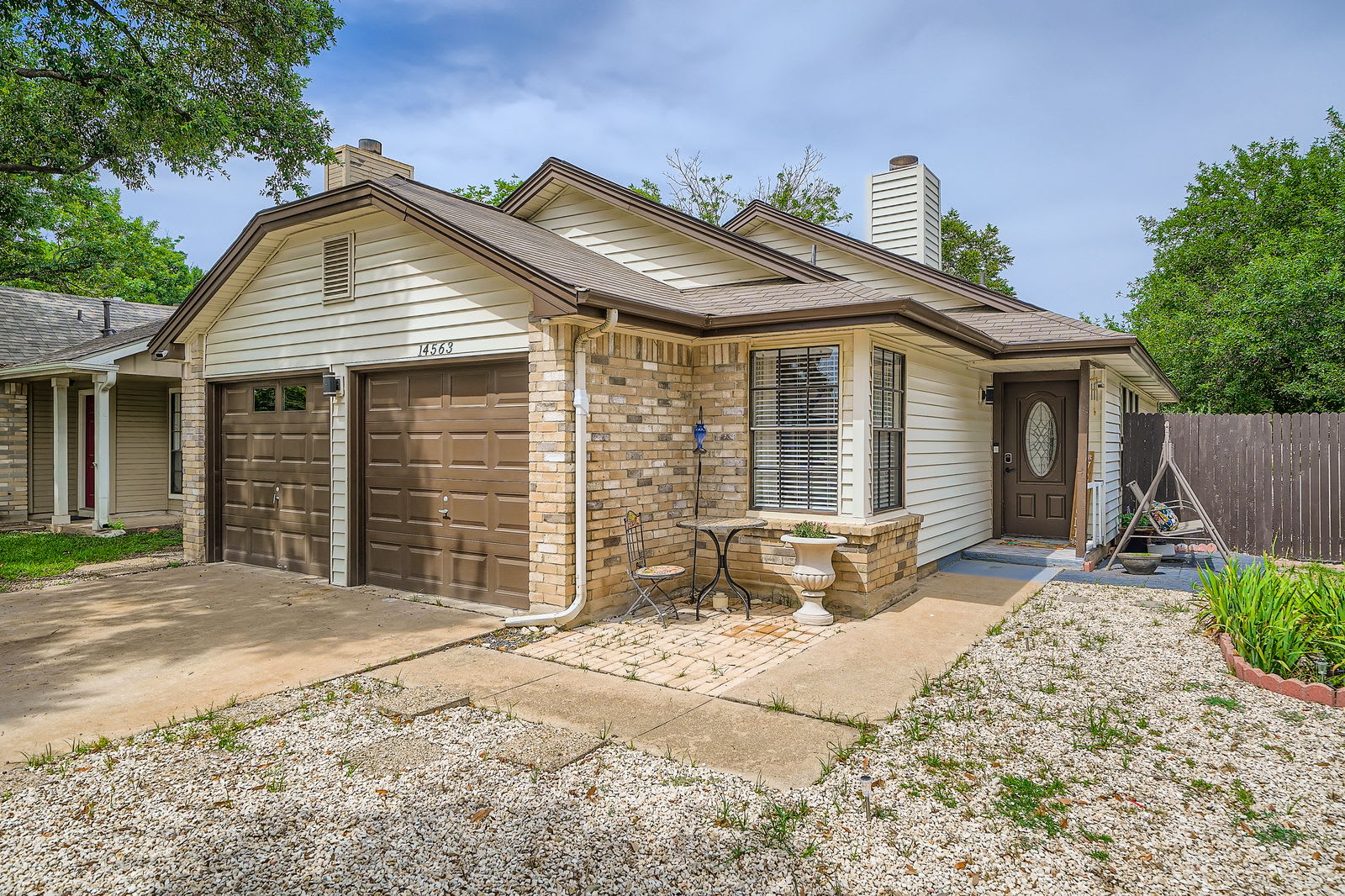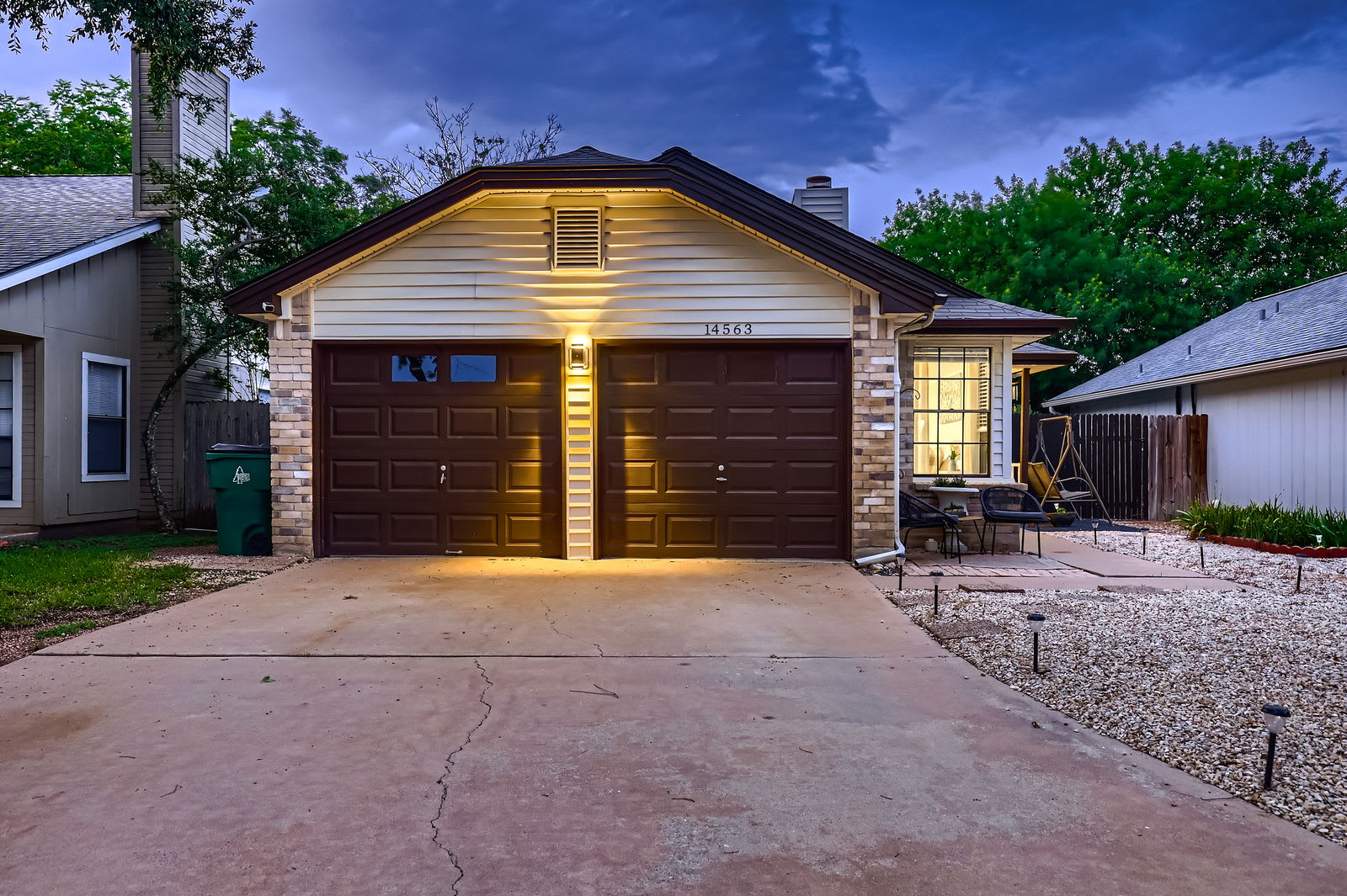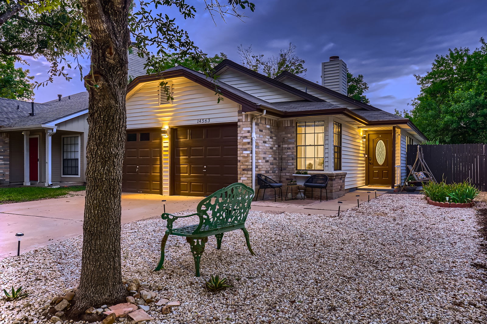 Step through French doors to your private fenced backyard with a wooden deck. Ideal for morning coffee, evening cocktails, or unwinding under the Texas stars.