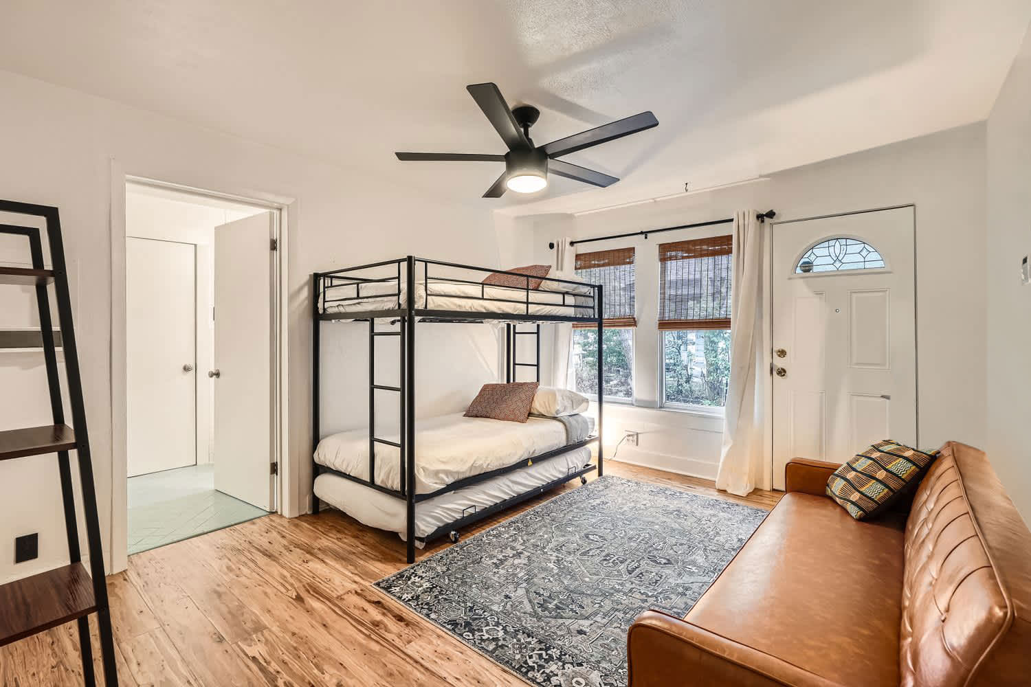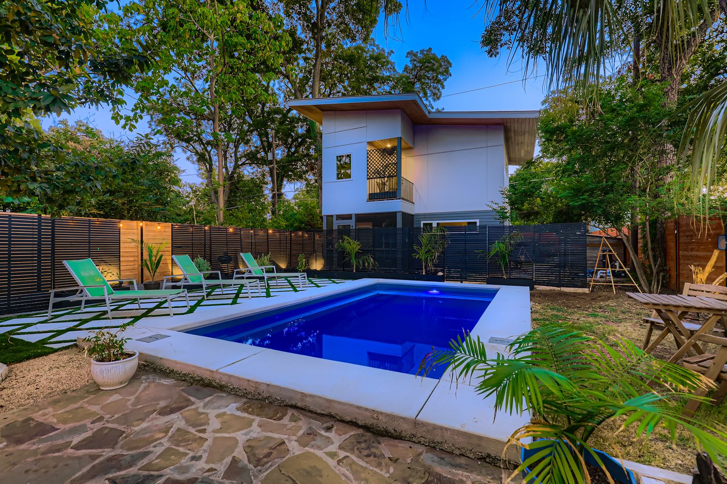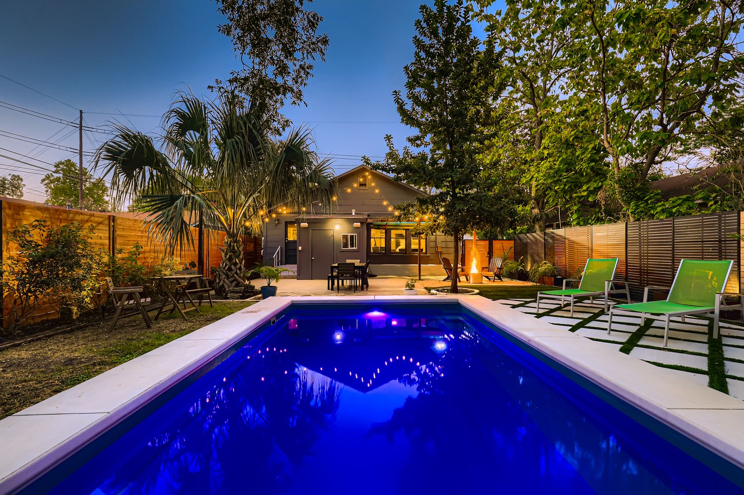 Relax in the fully fenced backyard, perfect for group hangouts, morning coffee, or evening drinks after exploring East Austin. There is also a separate back house available for groups wanting additional space.