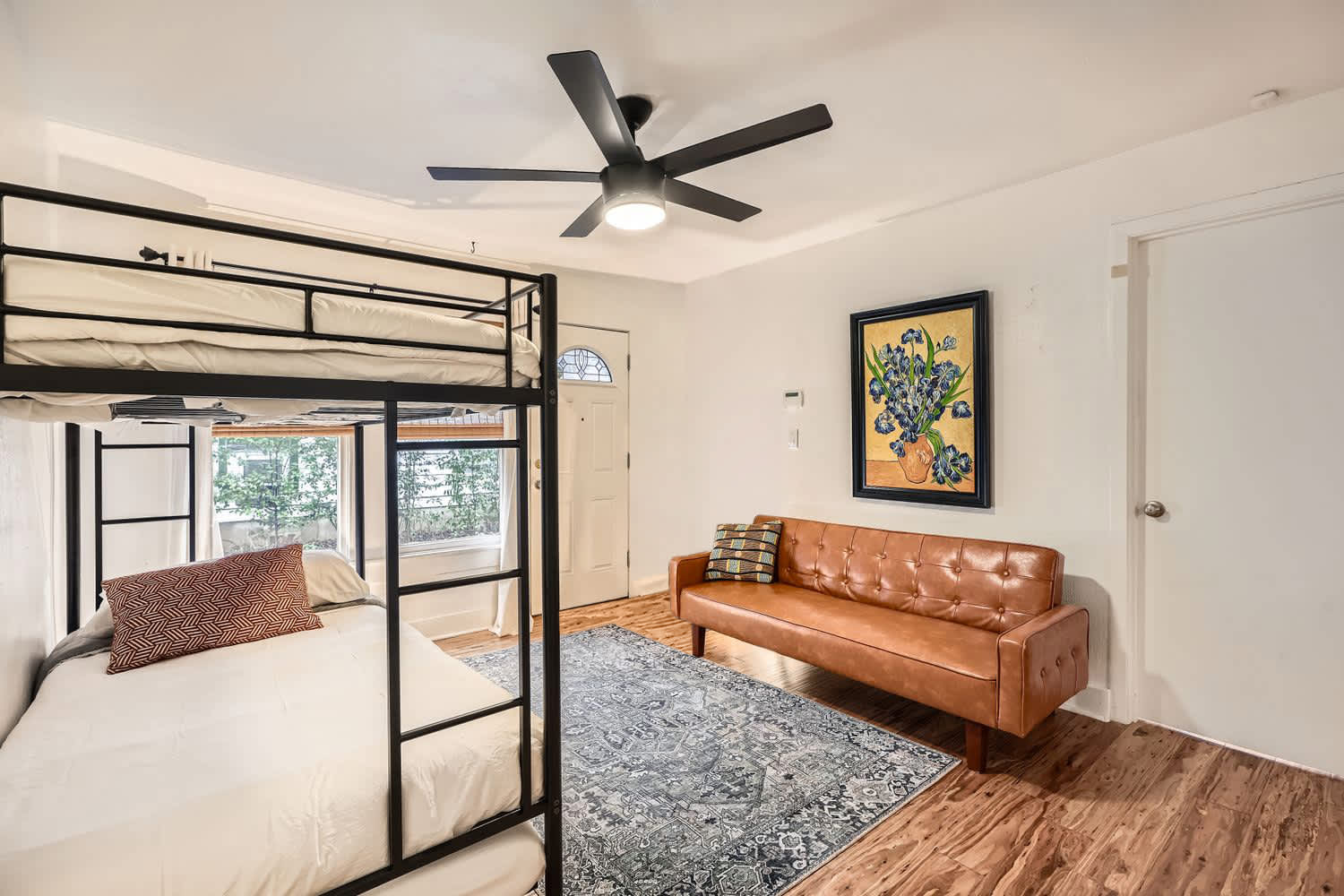 • Flexible sleeping layouts including one king bed, two full beds, three twin beds, and a futon