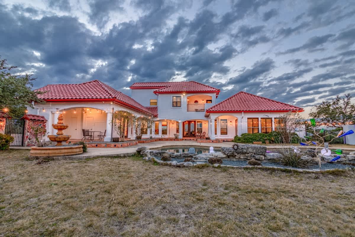 Escape to this Hill Country estate just minutes from Austin’s top breweries, distilleries, and event venues. Set on 20 private acres, this 6BR/4BA retreat features multiple kitchens, balconies with sunset views, and a resort-style pool, spa, and sauna. Ideal for weddings, retreats, SXSW guests, ACL weekends, and F1 at COTA, it offers space, luxury, and privacy...all just 25 minutes from downtown Austin’s music, dining, and nightlife.