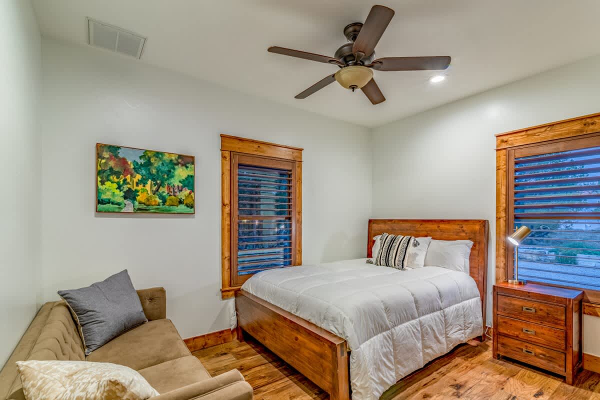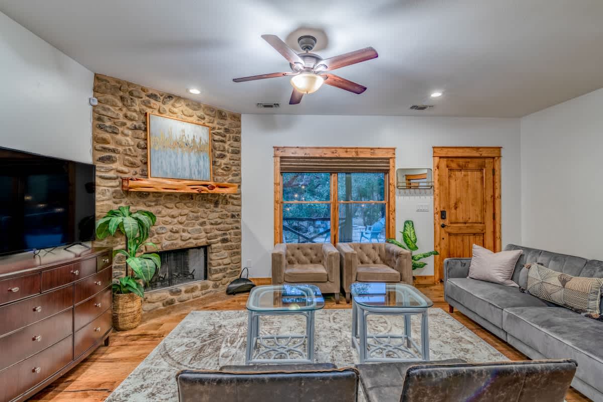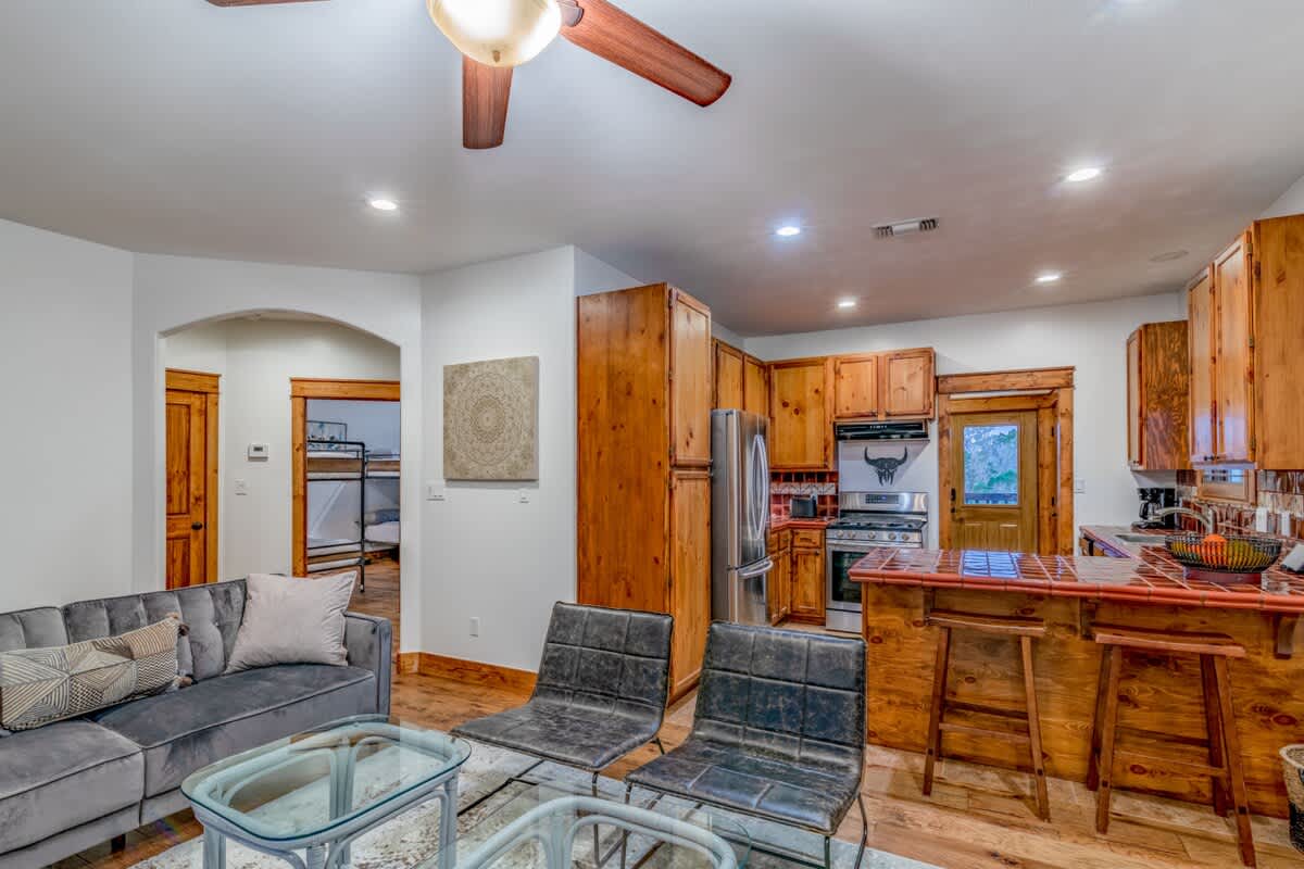 Welcome to ATX Hideaway, your private retreat just around the corner from our Hill Country Mansion on Fitzhugh Road. This spacious 2-bedroom, 1-bath casita comfortably sleeps up to 14 and combines modern amenities, rustic charm, and Austin convenience for the perfect group getaway.