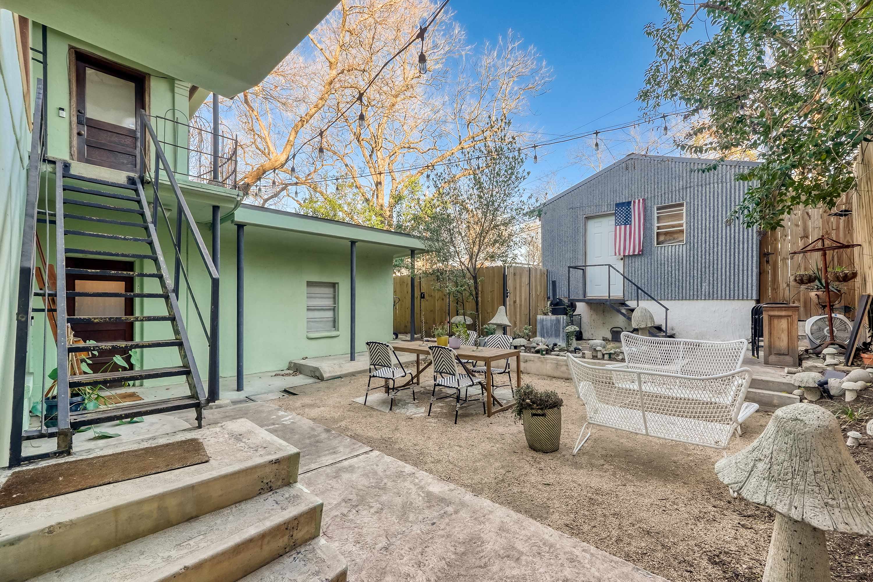 •Private patio for morning coffee or late-night hangs under string lights