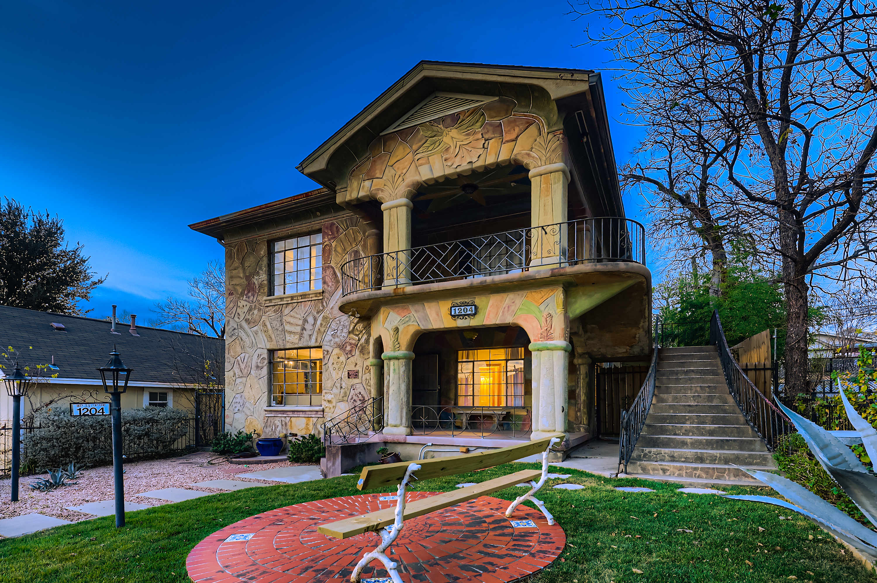 Stay in one of Austin’s most iconic historic homes...an artist-built 3BR retreat recognized by Preservation Austin and steps from everything downtown. Built in the 1940s by Genero Briones, this one-of-a-kind folk art gem blends culture and comfort with skyline views, modern amenities, and an unbeatable location. Walk to SXSW venues, 6th Street, Rainey, UT Stadium, and Austin’s best bars, coffee shops, and food trucks. A creative’s dream in the heart of the city!