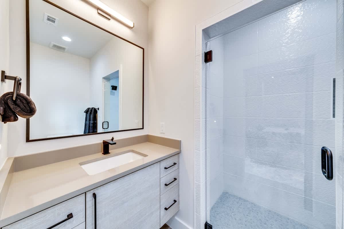Second Level Bath – Spacious with double sinks and a tub/shower combo.
