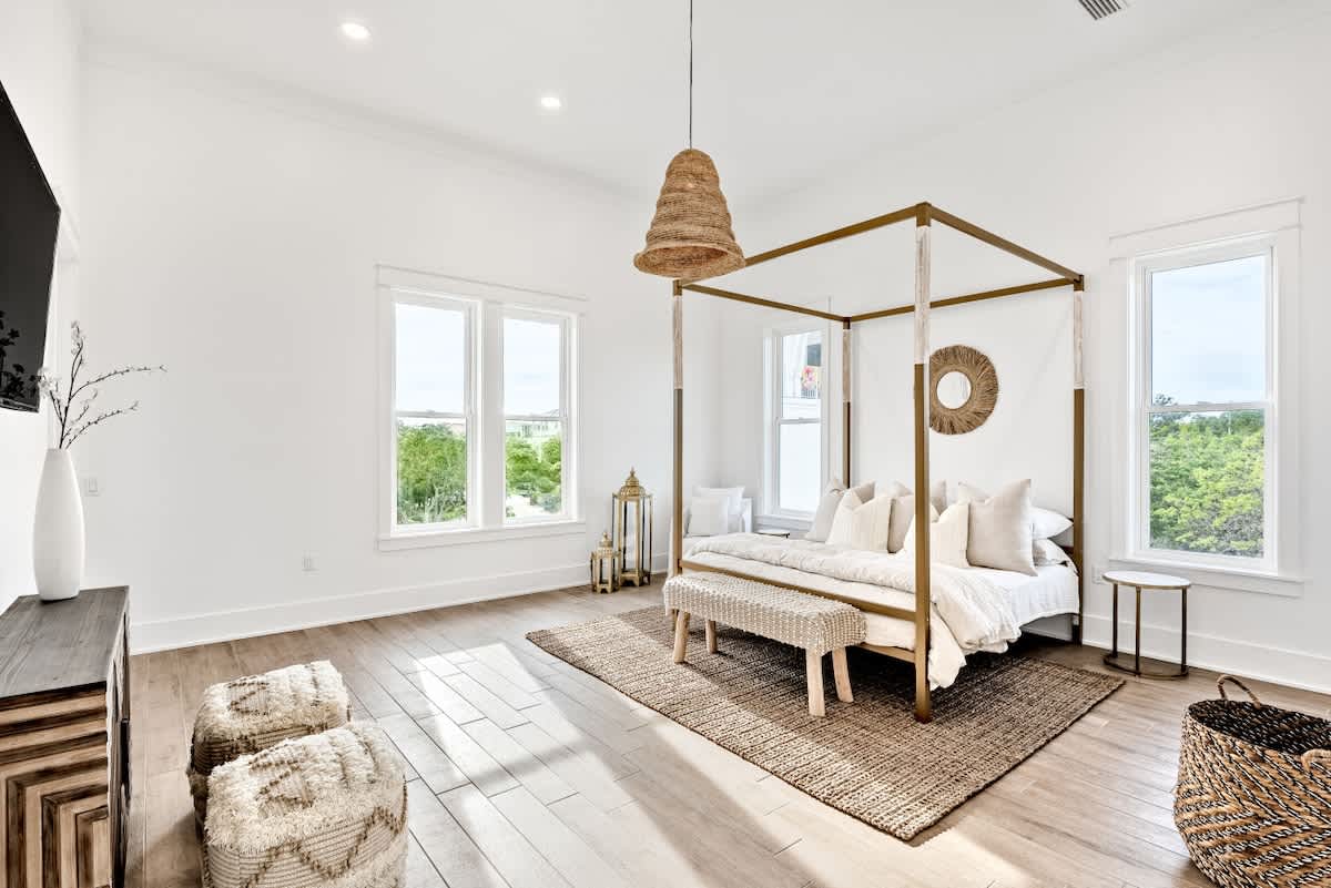 This stunning 8-bedroom, 7.5-bath Inlet Beach retreat was built for family gatherings, group getaways, and unforgettable vacations along Florida’s Scenic 30A. Spanning three levels and sleeping up to 20 guests, the home blends modern coastal luxury with thoughtful convenience…all just steps from sugar-white sands and turquoise Gulf waters.