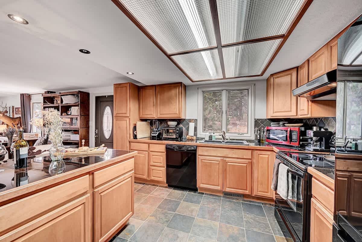 • Full kitchen with oven, stovetop, fridge, freezer, microwave, toaster oven, blender, dishwasher, and coffee maker