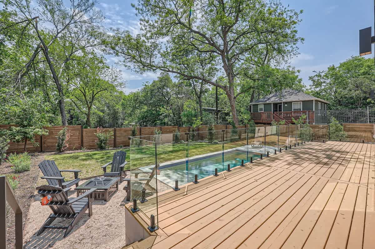 Step outside to your private pool and expansive deck, surrounded by modern landscaping. Lounge poolside with a margarita, grill up dinner, or enjoy a night swim under the Austin sky.