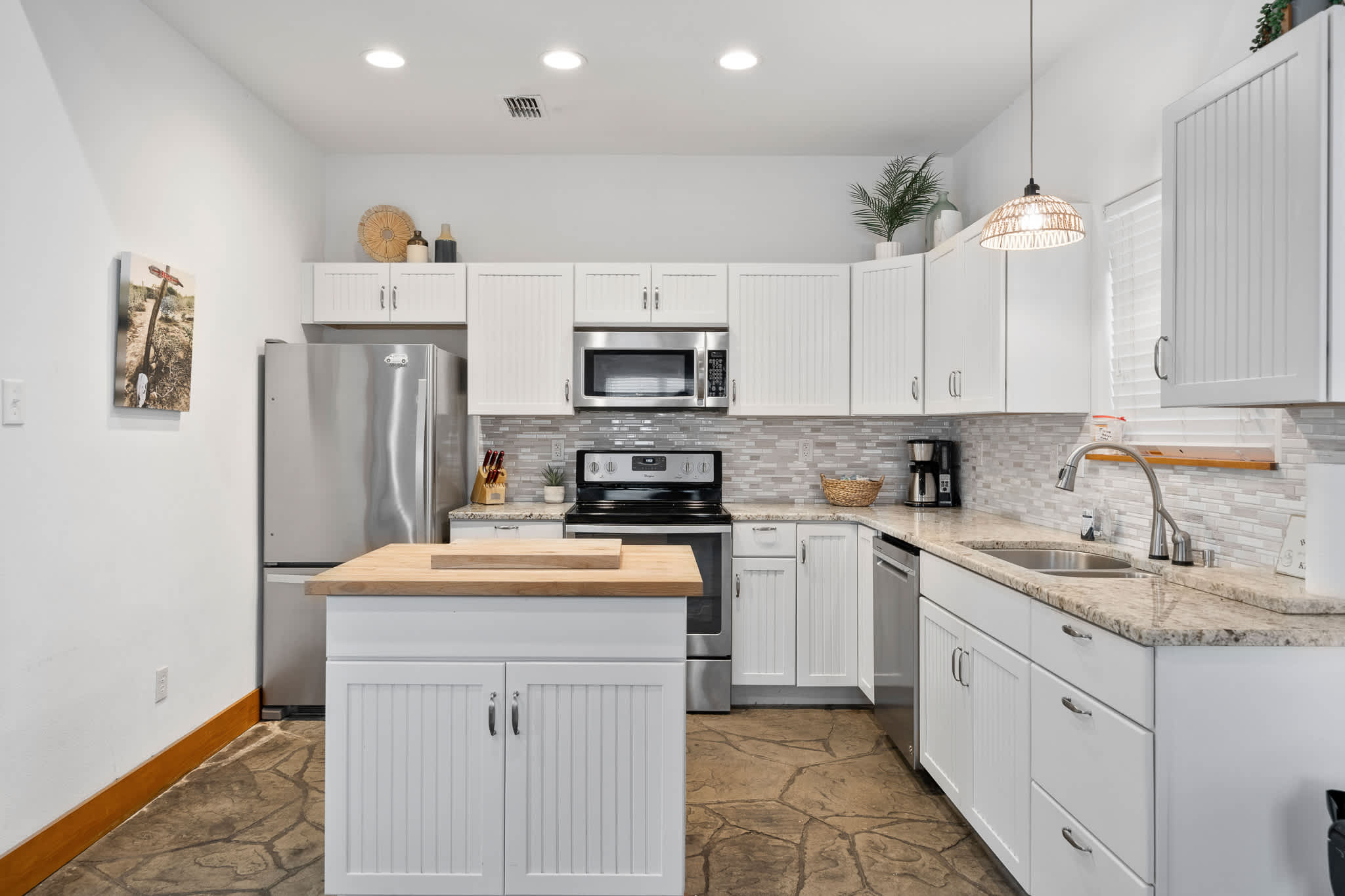 • Full kitchen with modern appliances, cookware, and dinnerware