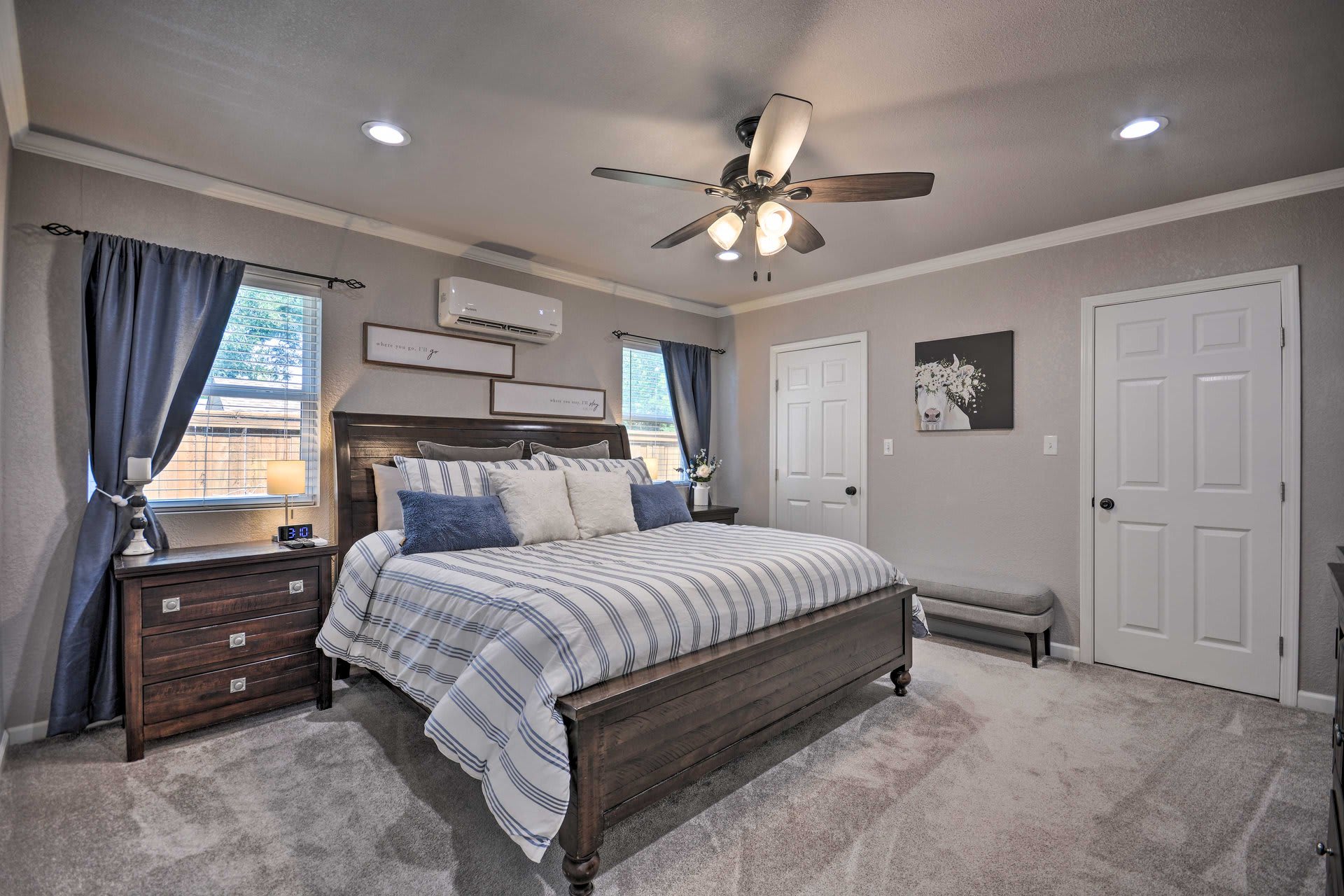 • Primary Suite: King bed, ensuite bath, Smart TV