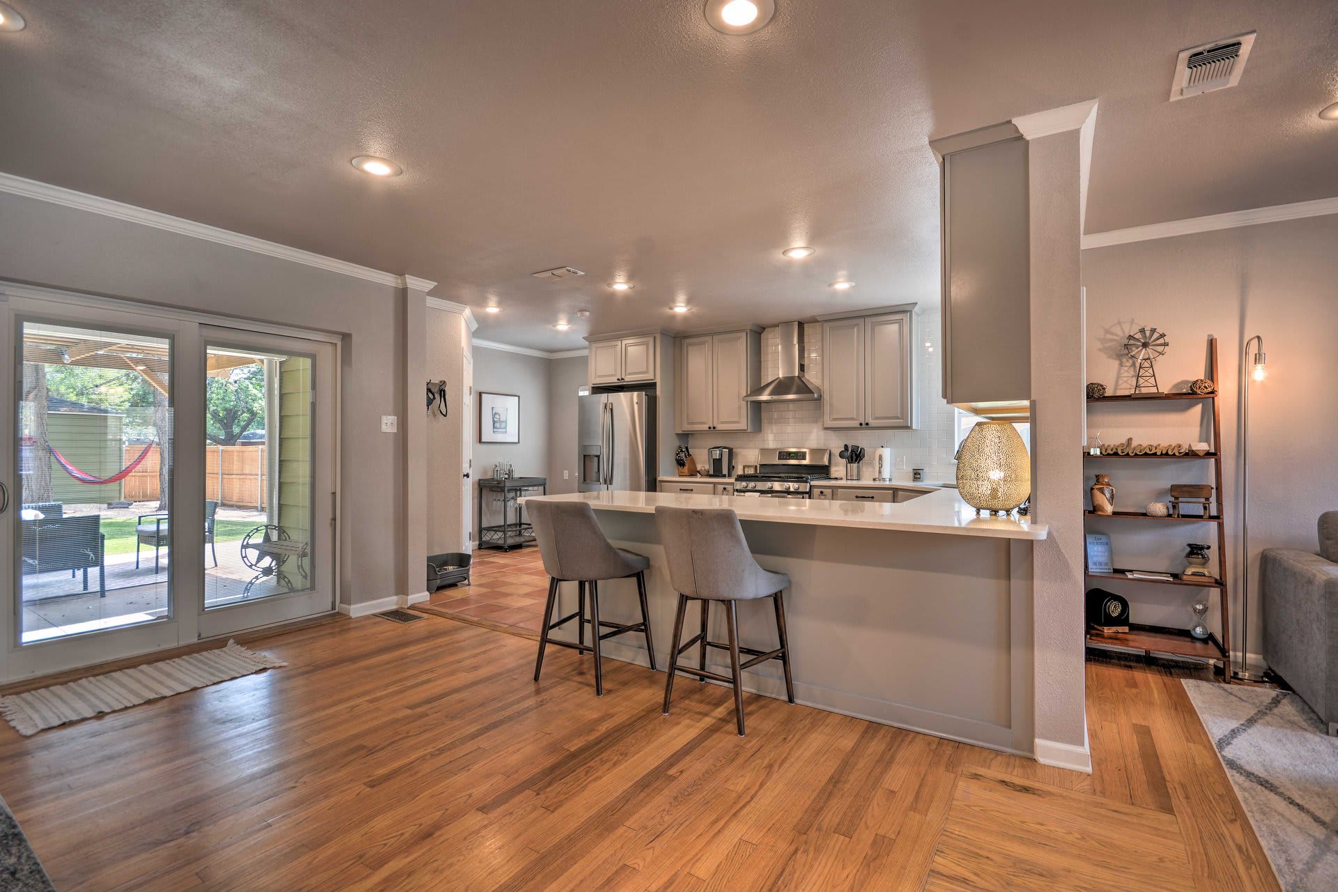 Stay just minutes from Texas Tech University and Downtown Lubbock in this stylish 3BR/2BA home with a king suite, modern kitchen, and private fenced backyard. Perfect for game days, family visits, or business trips, this Tech Terrace gem features fast WiFi, in-unit laundry, and a cozy outdoor lounge with BBQ grill. Walk to Tech Terrace Park, J&B Coffee, and local eateries, or enjoy a 5-minute drive to the Jones AT&T Stadium and the Depot District’s nightlife.