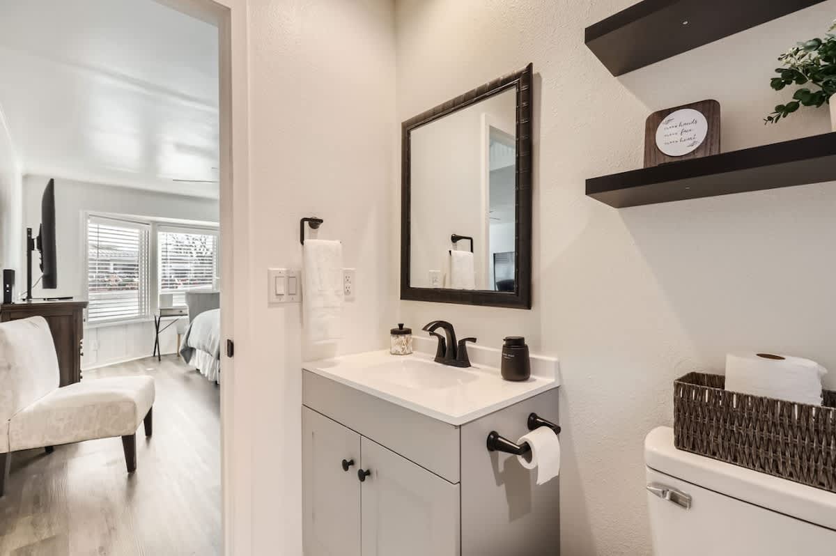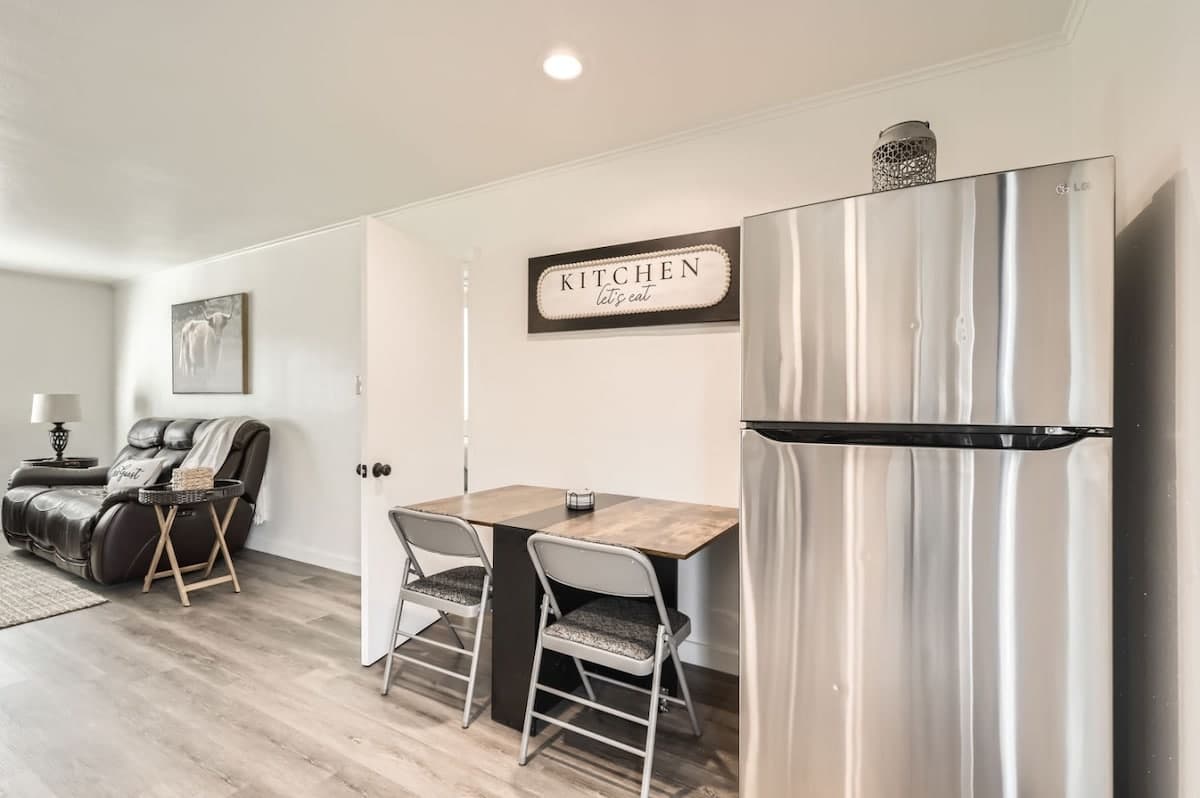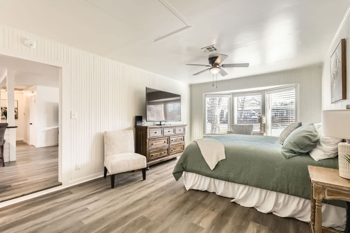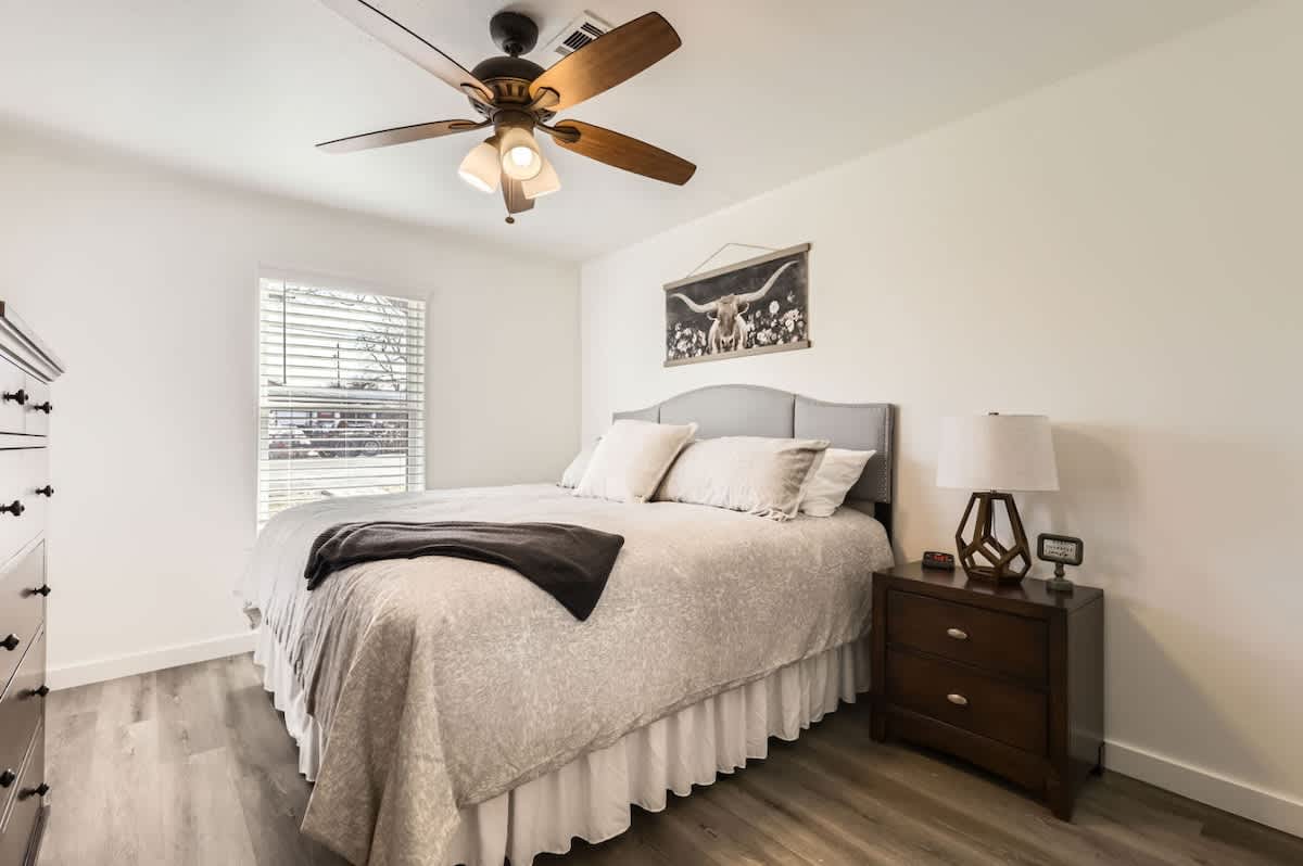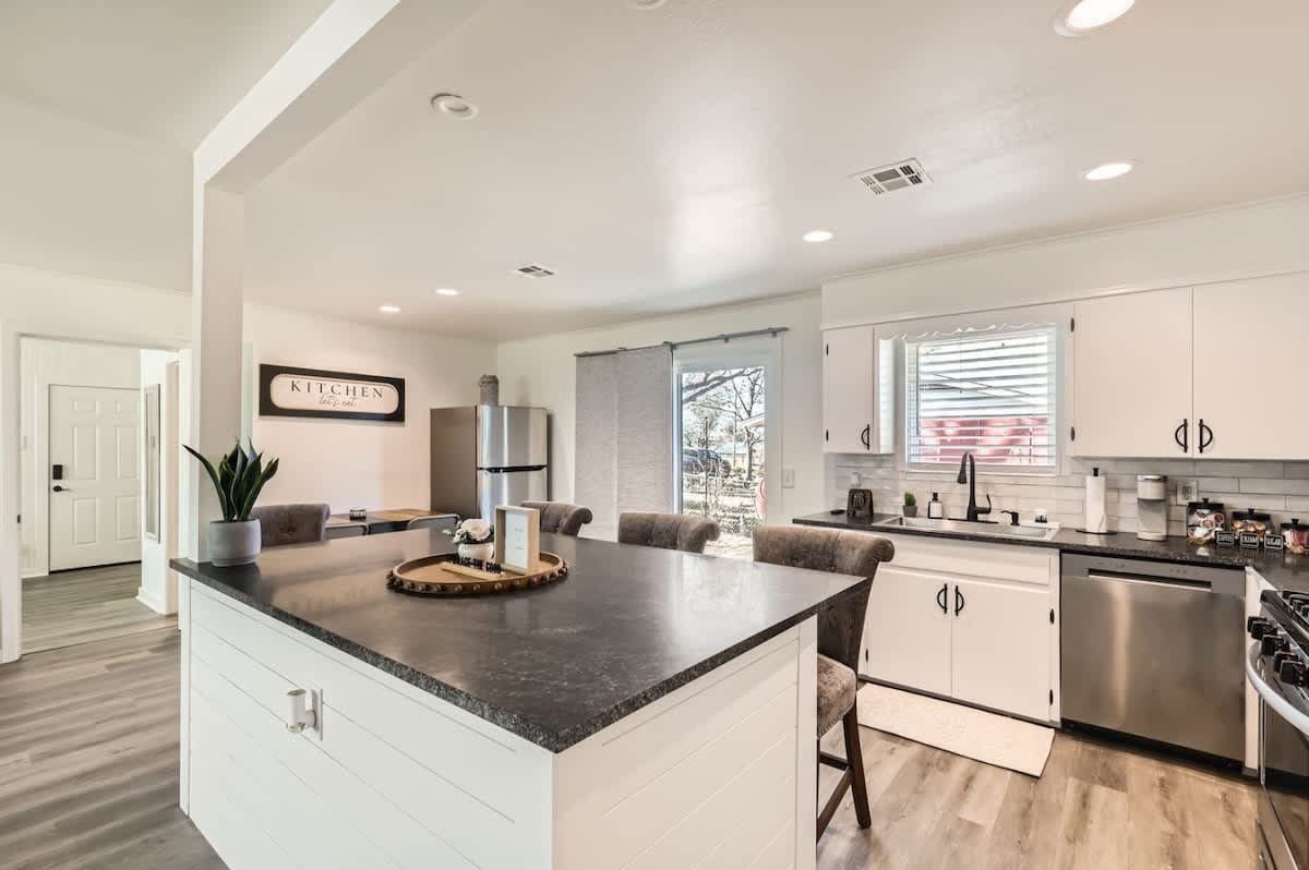 Step into this beautifully renovated 2-bedroom, 2-bath home where we thoughtfully designed the space to deliver everything you need for a clean & comfortable 5-Star-Stay! . The open living area is perfect for relaxation, while the fully equipped kitchen has everything you need to prepare meals, including a Keurig coffee maker with pods. The master bedroom features a king bed, and the second bedroom also has a king bed. Enjoy free WiFi, HVAC, a washer/dryer with detergent, and a dishwasher. Just steps from Georgetown Square, this home is the perfect retreat!