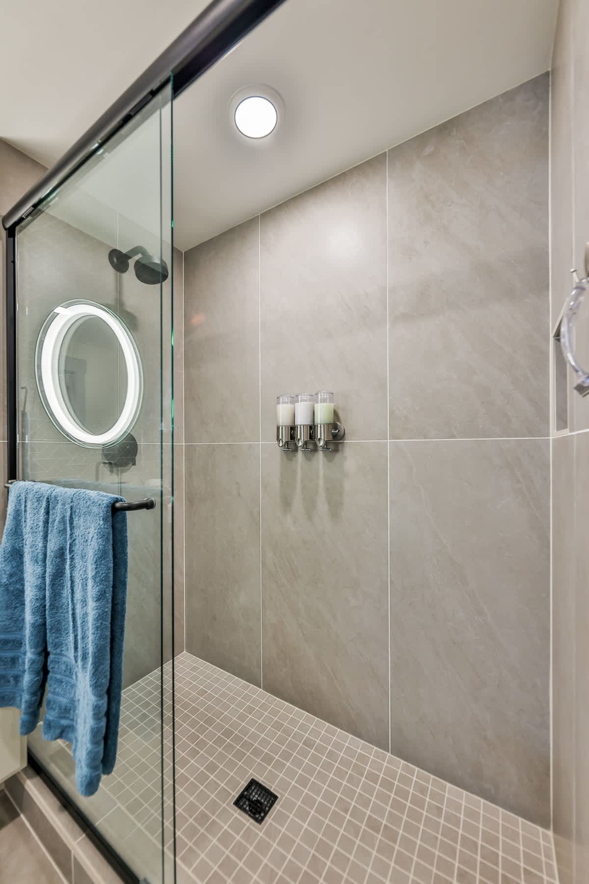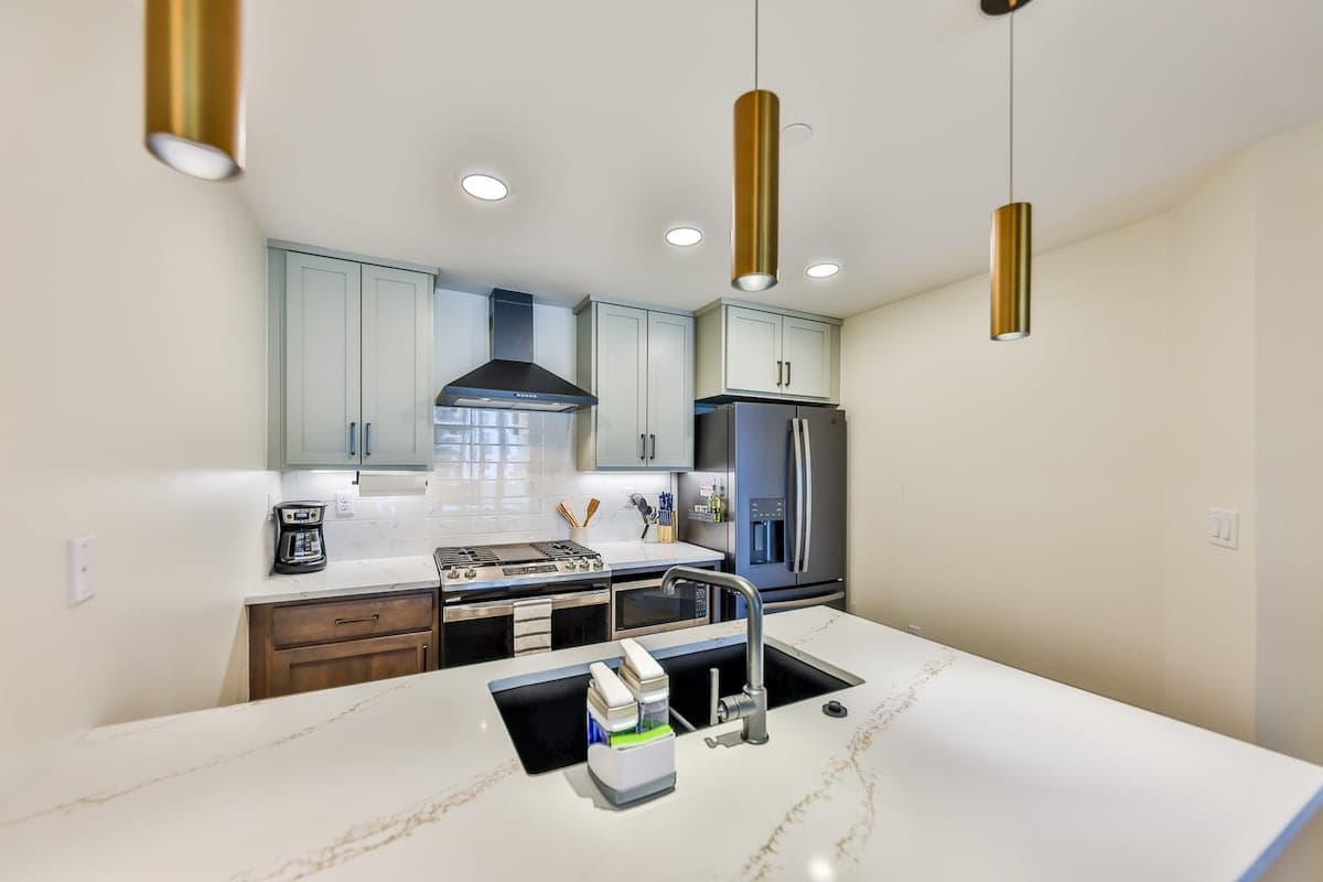 A sparkling clean bathroom with walk-in shower, soft towels, and boutique toiletries helps you reset after a day outdoors. Plus, the in-unit washer/dryer makes it easy to keep gear fresh.