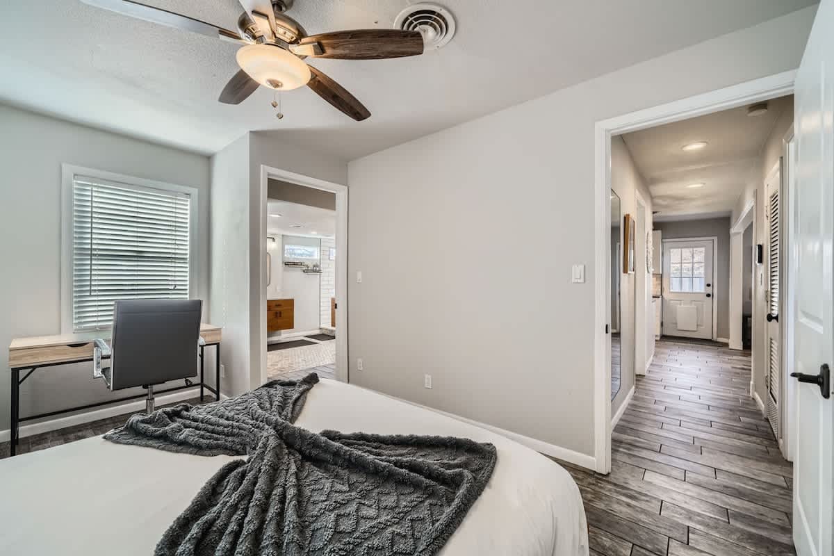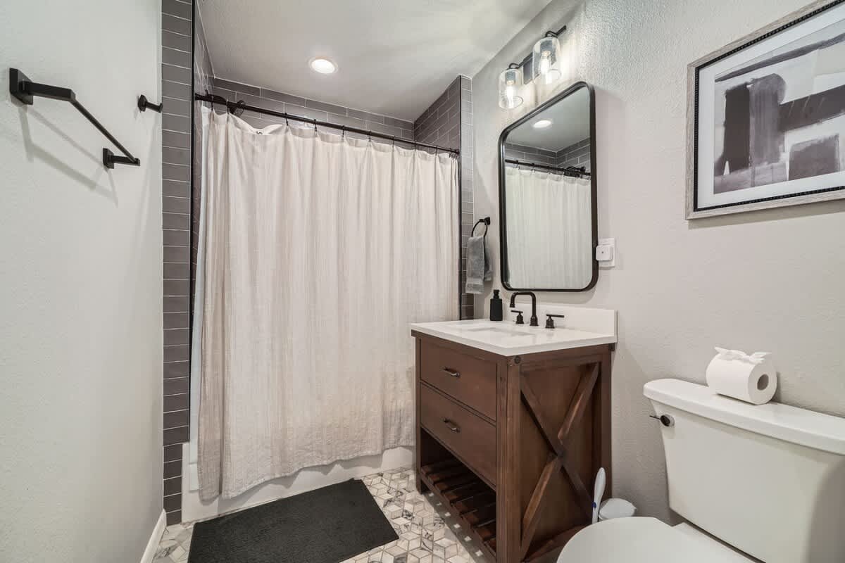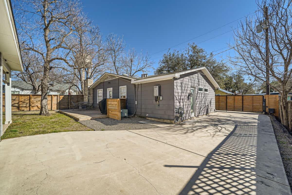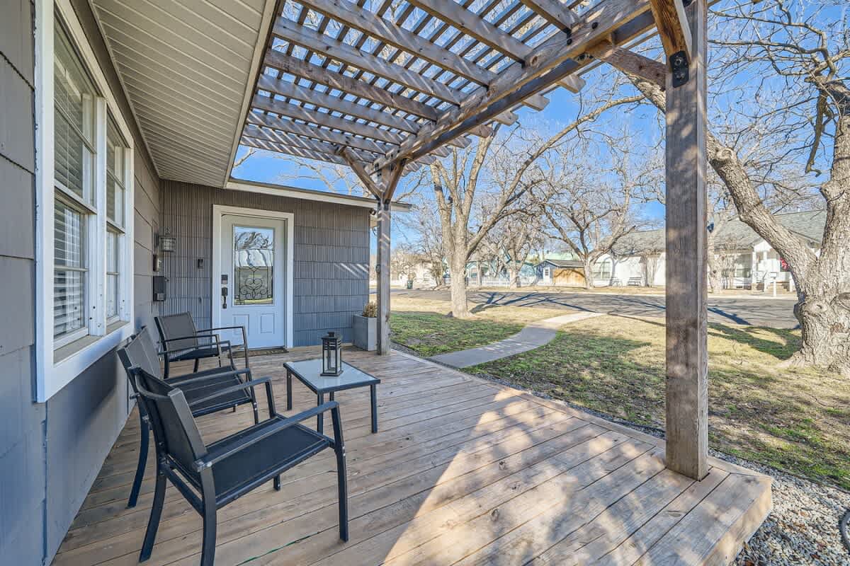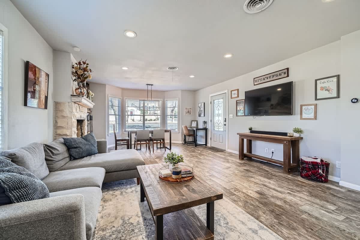 Welcome to Villa on Vine, a refreshed 2 bedroom, 2 bathroom retreat in Old Town Georgetown, just steps from Southwestern University and the Most Beautiful Square in Texas. You are perfectly placed for mornings at the Square, afternoons on Lake Georgetown, and evenings relaxing on the patio with the outdoor TV. When you are home, enjoy a fully stocked kitchen, a comfortable work from home setup, and space designed to truly unwind. Weekly and monthly discounts are built in for longer stays.